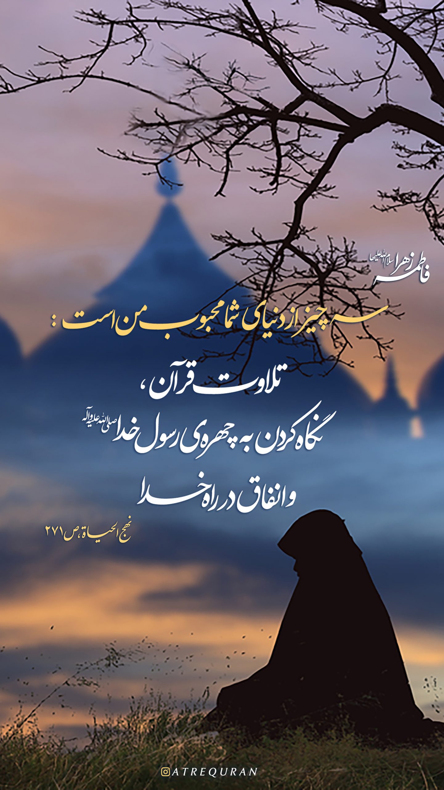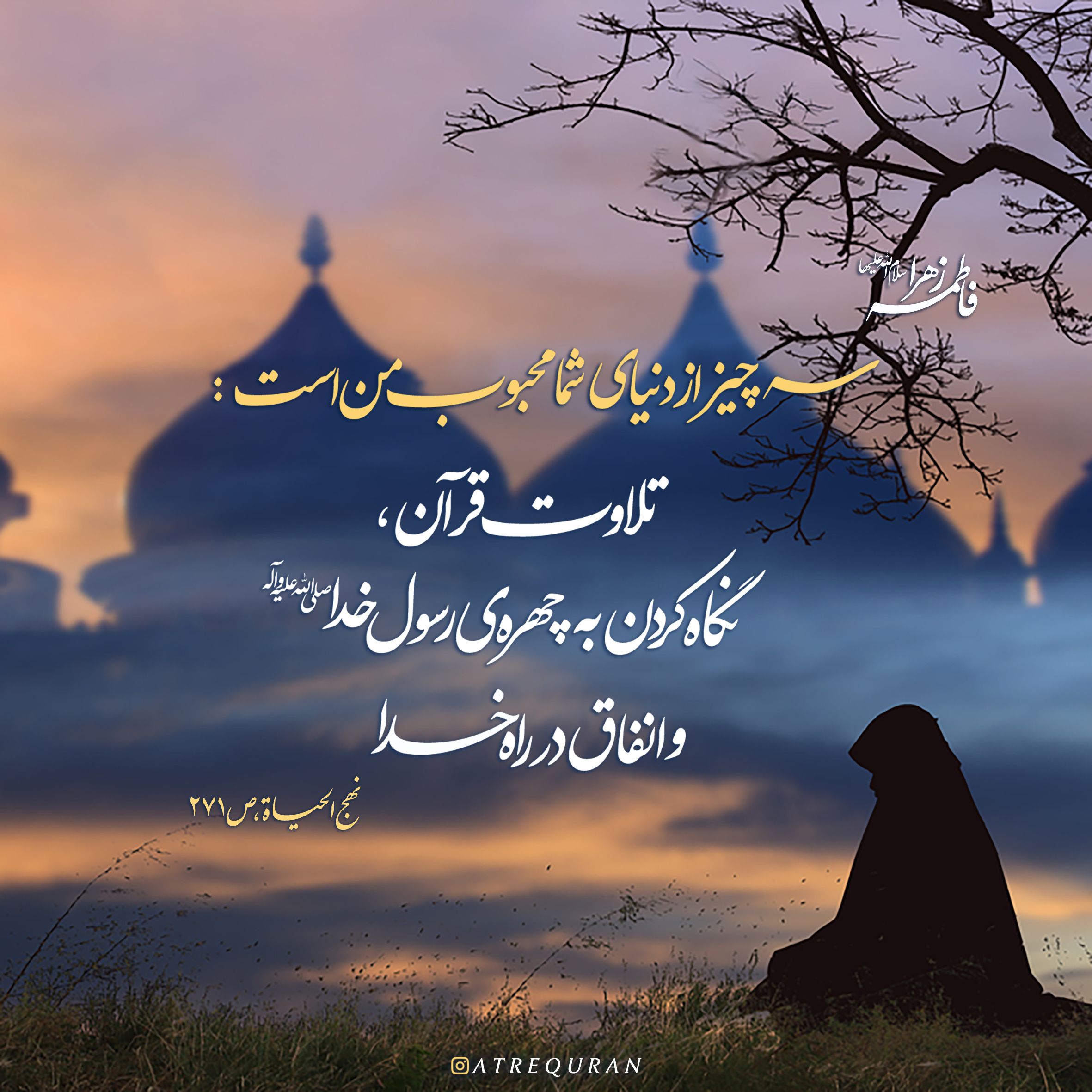 ?سه چیز از دنیای شما محبوب من است: اوّل خواندن قرآن، دوم نگاه کردن به چهره‌ی رسول‌الله و سوم انفاق در راه خدا.