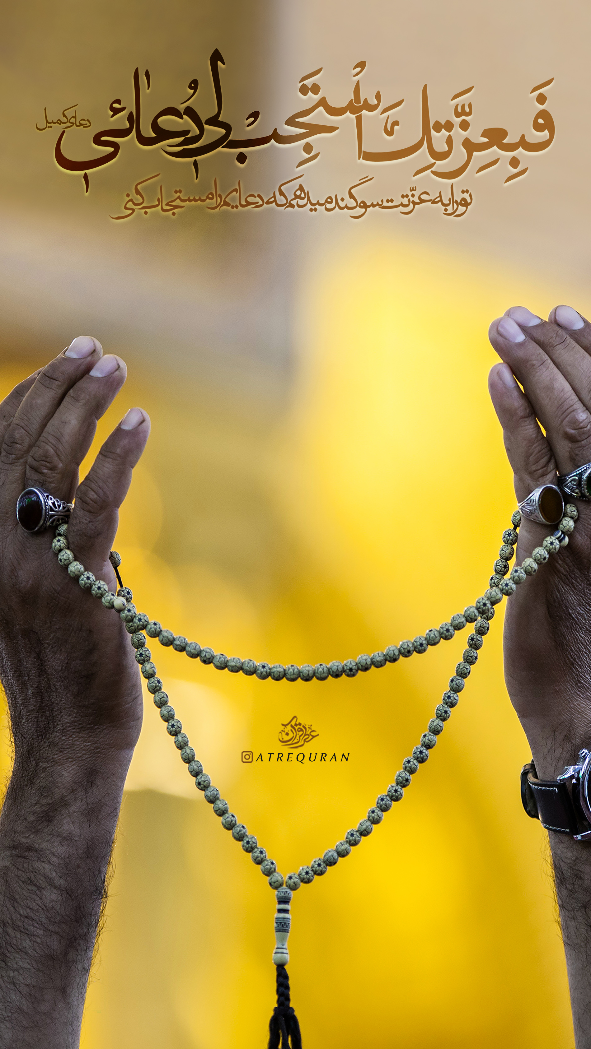 فَإِلَيْكَ يارَبِّ نَصَبْتُ وَجْهِى، وَ إِلَيْكَ يَا رَبِّ مَدَدْتُ يَدِى، فَبِعِزَّتِكَ اسْتَجِبْ لِى دُعائِى، وَبَلِّغْنِى مُناىَ، وَلَا تَقْطَعْ مِنْ فَضْلِكَ رَجائِى، وَاكْفِنِى شَرَّ الْجِنِّ وَالْإِنْسِ مِنْ أَعْدائِىپس ای پروردگار من تنها روی بهسوی تو داشتم و دستم را تنها به جانب تو دراز کردم، پس تو را به عزّتت سوگند میدهم که دعایم را مستجاب کنی و مرا به آرزویم برسانی و امیدم را از فضلت ناامید نکنی و شرّ دشمنانم را از پری و آدمی از من کفایت کنی