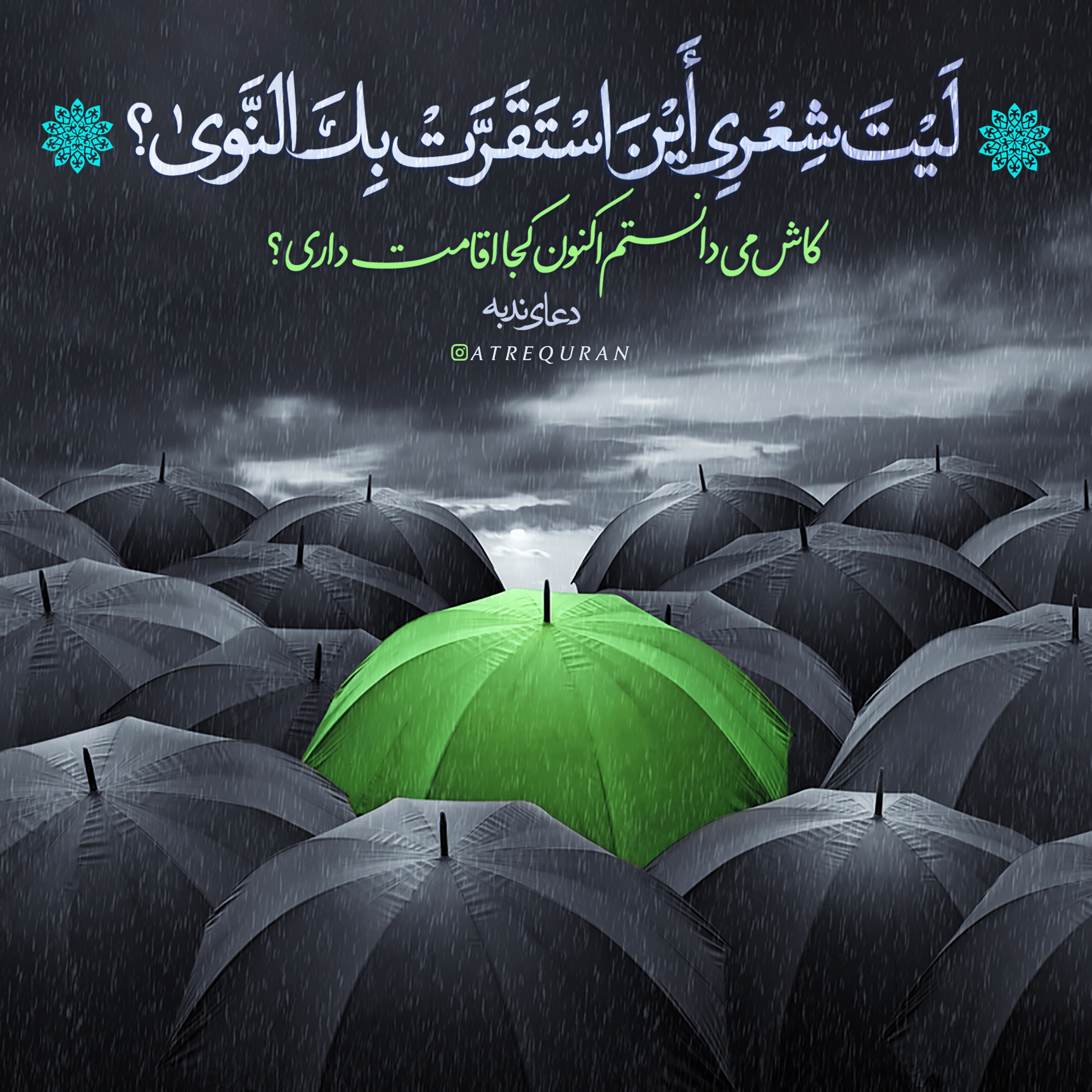 ◀️کلمه «نوي» در کتاب قاموس به معني خانه و جابجا شدن از مکاني به مکان ديگر آمده. «اي نسيم سحر آرامگه يار کجاست» چون حکومت عدل جهاني به وسيله آن حضرت برپا مي گردد پس تا زماني که جامعه بشر استعداد آن را پيدا نکند و روي به يک حکومت در جهان نرود و خود را مهياي آن نسازد آن حضرت از انظار مخفي است و در پس پرده غيبت است و ظاهر نمي شود لذا منزل و اقامتگاه او هم معلوم نيست، و کسي جا و مکان مخصوص او را اطلاع ندارد.