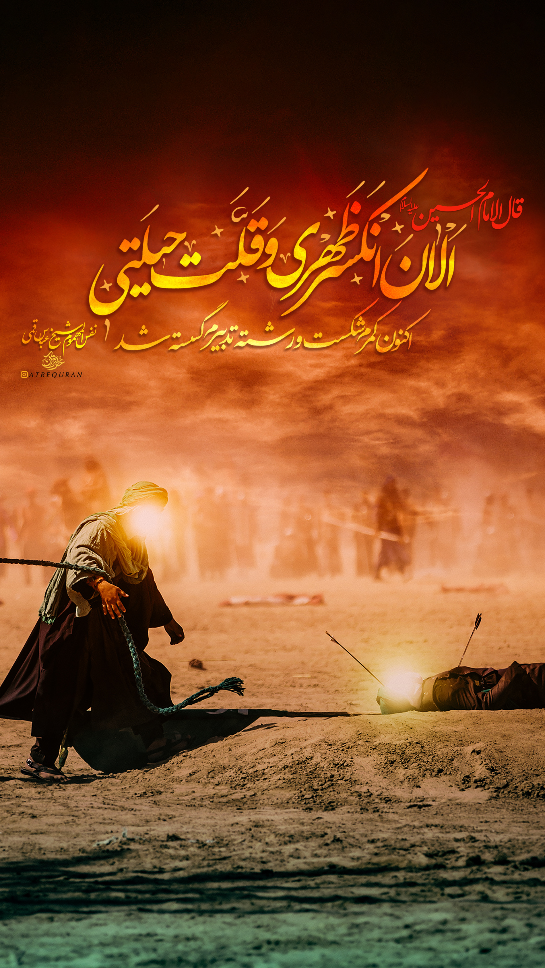 ◀️مشك را پر آب نمود و بر كتف راست افكند و از شريعه بيرون شتافت تا مگر خويش را به لشكرگاه برادر برساند و كودكان را از زحمت تشنگي برهاند.