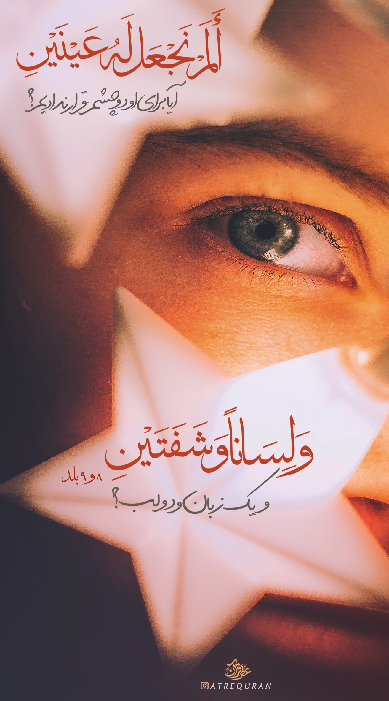 آيا ما براى او دو چشم قرار نداديم؟ چگونه انسان مىبيند؟ ولى خيال مىكند خدا او را نمىبيند؟