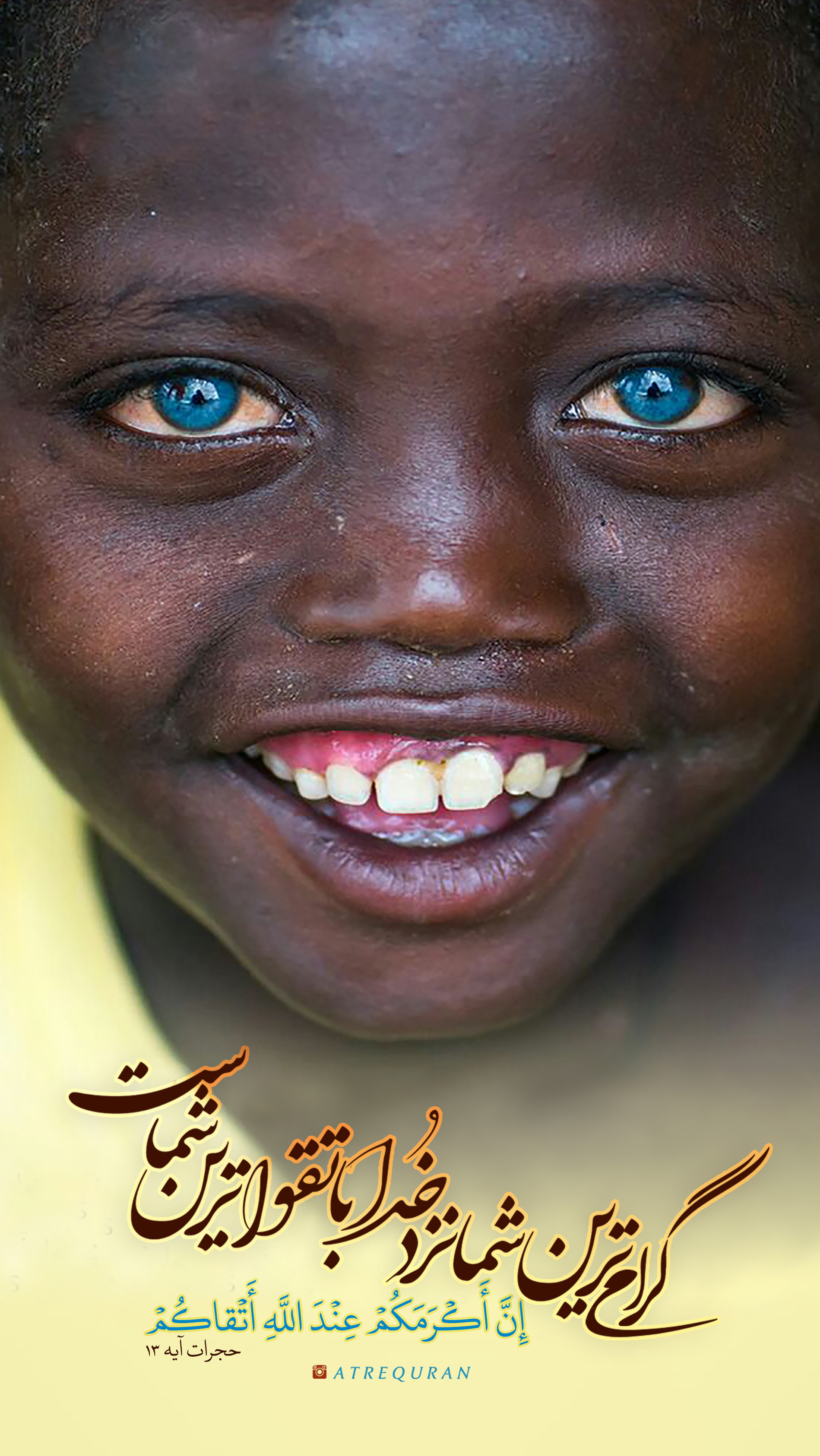 ?ای مردم! ما شما را از یک مرد و زن آفریدیم و شما را تیره ها و قبیله ها قرار دادیم تا یکدیگر را بشناسید ( اینها ملاک امتیاز نیست ، ) گرامی ترین شما نزد خداوند با تقواترین شماست خداوند دانا و آگاه است!?