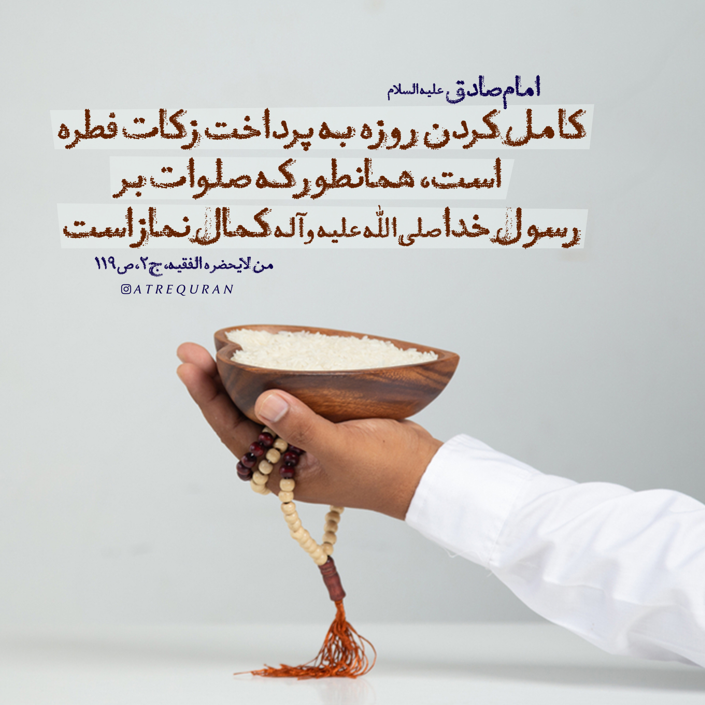 ?کامل کردن روزه به پرداخت زکات فطره است، همانطور که صلوات بر پیامبر صلی الله علیه و آله کمال نماز است.