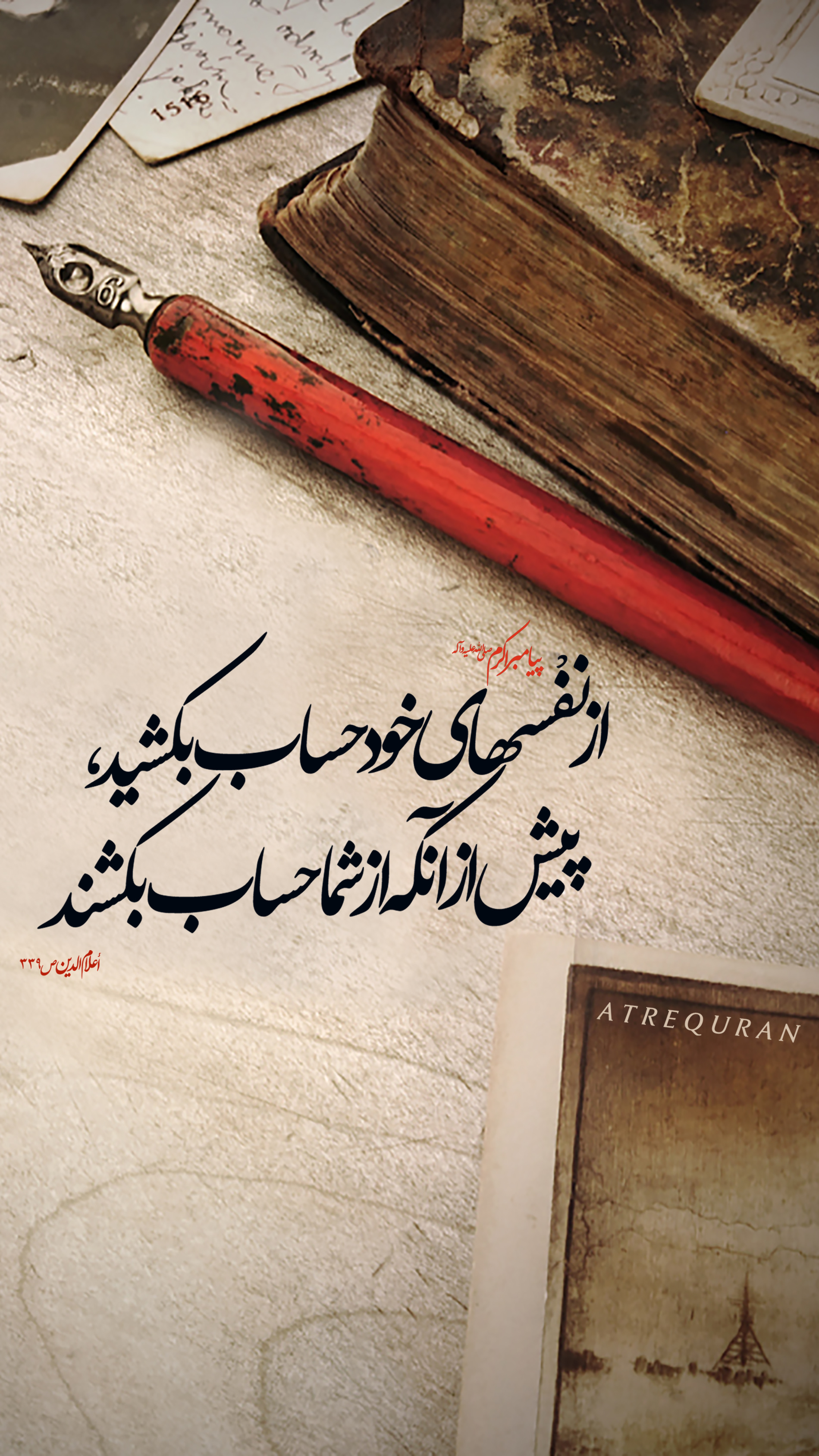 ⁦◀️⁩از نفْسهاى خود حساب بكشيد، پيش از آن كه از شما حساب بكشند و پيش از آن كه عذاب شويد، نفستان را آماده كنيد و پيش از آن كه [خواه ناخواه ]بُرده شويد، ره توشه سفر برداريد ، كه آن جا جايگاه عدالت است و مطالبه حقّ و سؤال از واجبات و وظايف. پس آن كه پيشاپيش هشدار داد كاملاً معذور است.