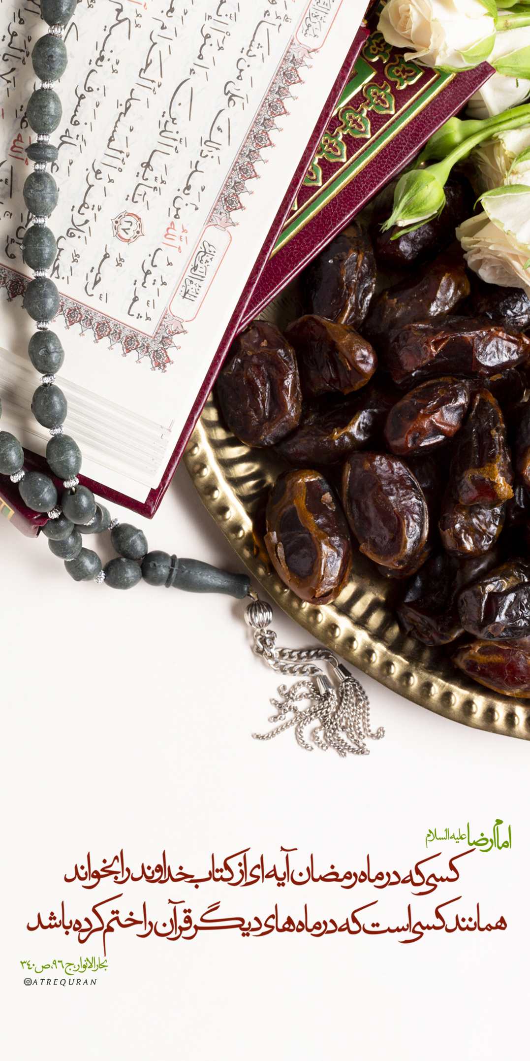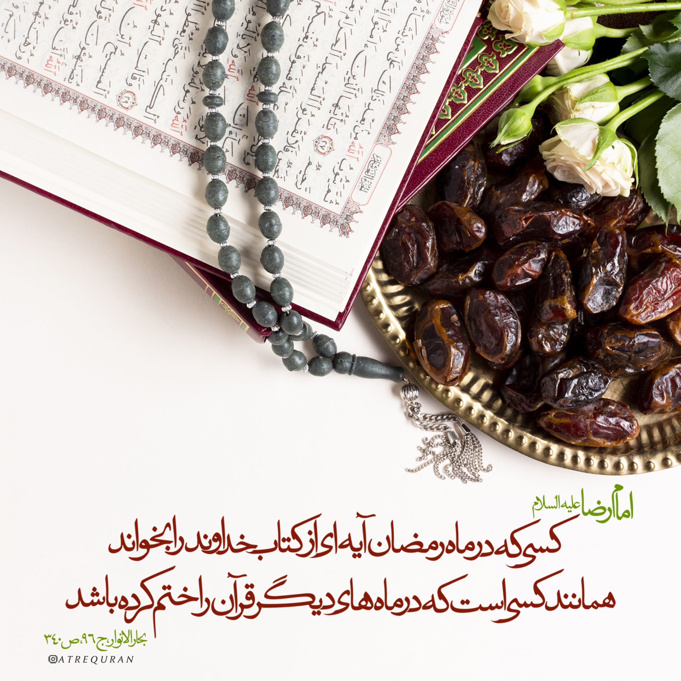 قالَ الامام الرِّضا – عليه السّلام – : الْحَسَناتُ في شَهْرِ رَمَضانَ مَقْبُولَةٌ وَ السَّيِّئاتُ فيهِ مَغْفُورَةٌ، مَنْ قَرَأ في شَهْرِ رَمَضانَ آيَةً مِنْ کتابِ اللهِ عَزَّوَجَلَّ کانَ کمَنْ خَتَمَ الْقُرْآنَ في غَيْرِهِ مِنَ الشُّهُورِ.