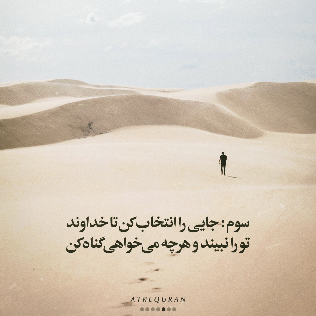 سوم: جایی را انتخاب کن تا خداوند تو را نبیند و هر چه می خواهی گناه کن.