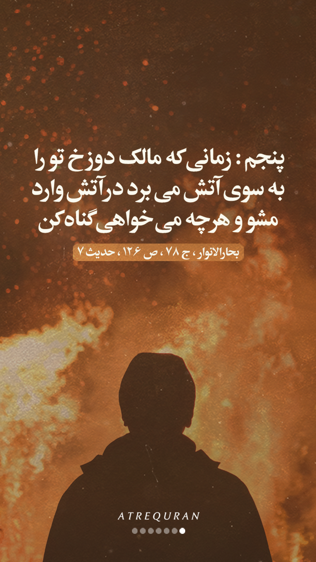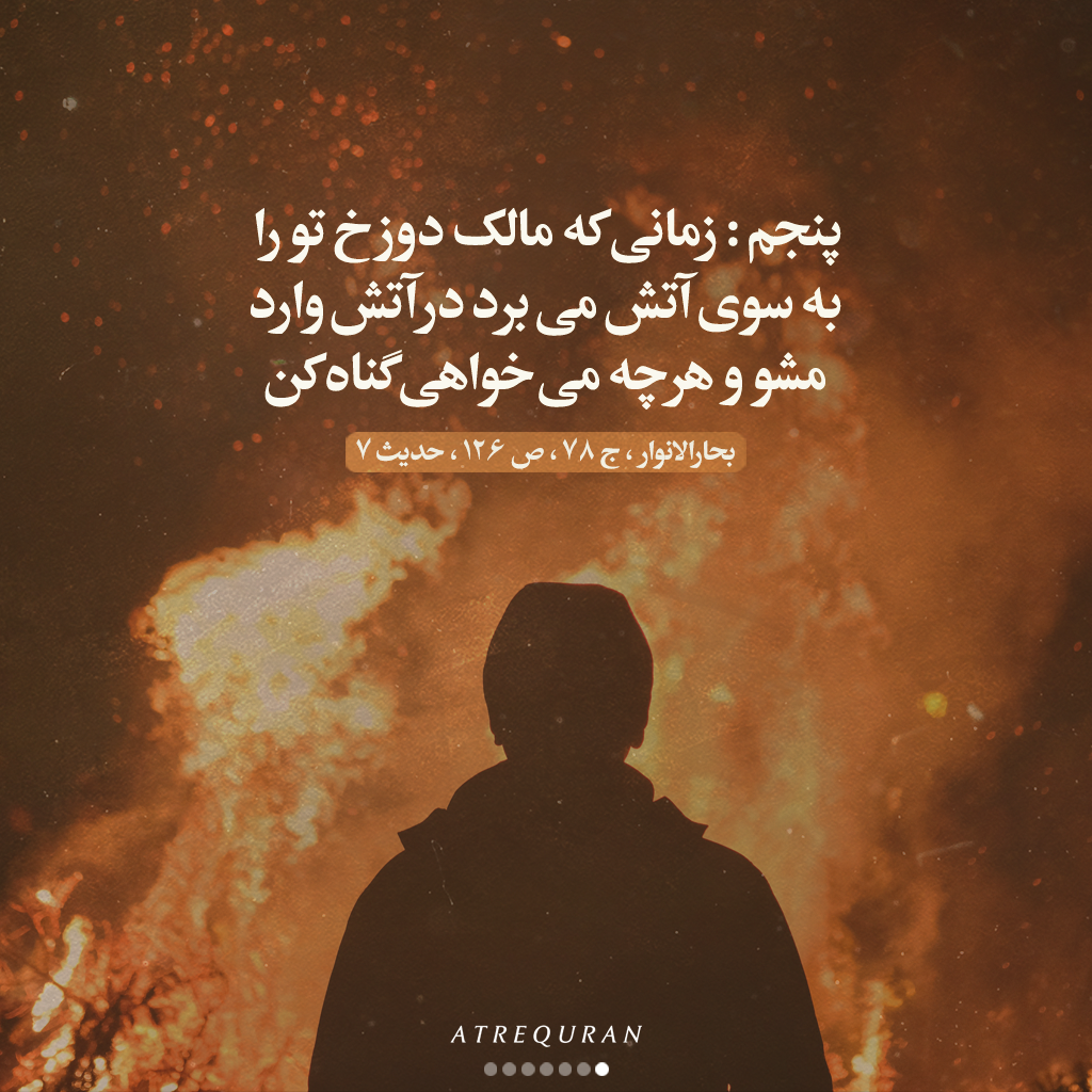 پنجم: زمانی که مالک دوزخ تو را به سوی آتش می برد در آتش وارد مشو و هر چه می خواهی گناه کن.»