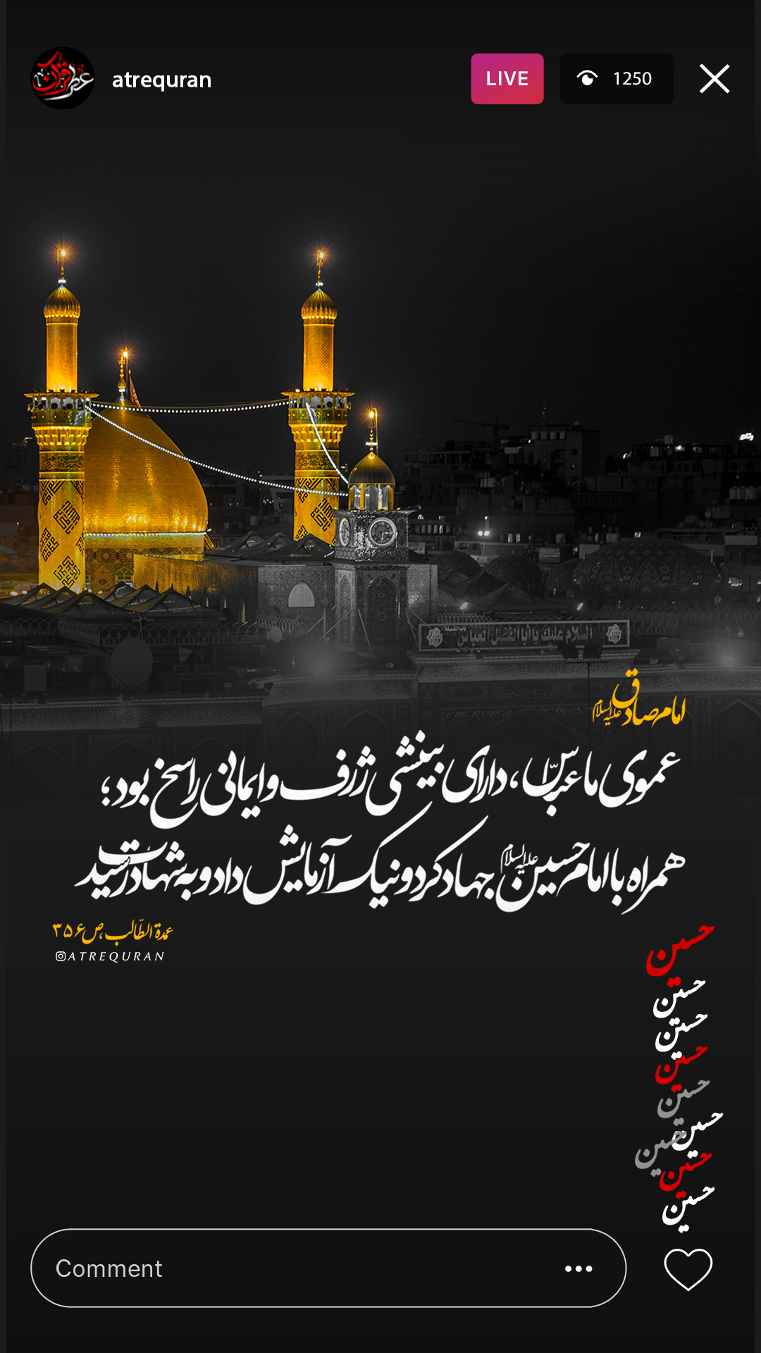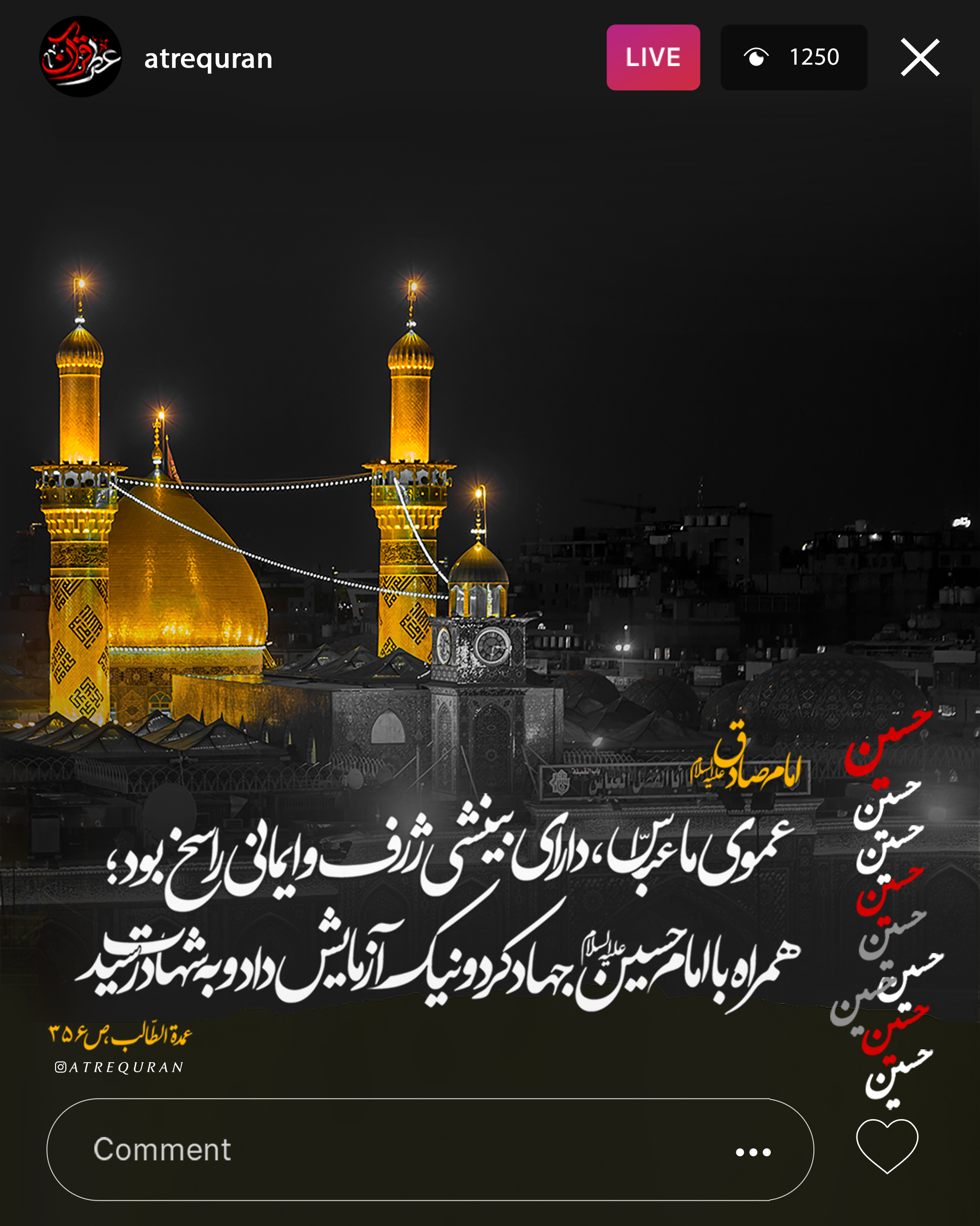 ◀️امام صادق عليه السلام :عموى ما ، عبّاس ، داراى بينشى ژرف و ايمانى راسخ بود ؛ همراه با امام حسين عليه السلام جهاد كرد و نيك آزمايش داد و به شهادت رسيد .».