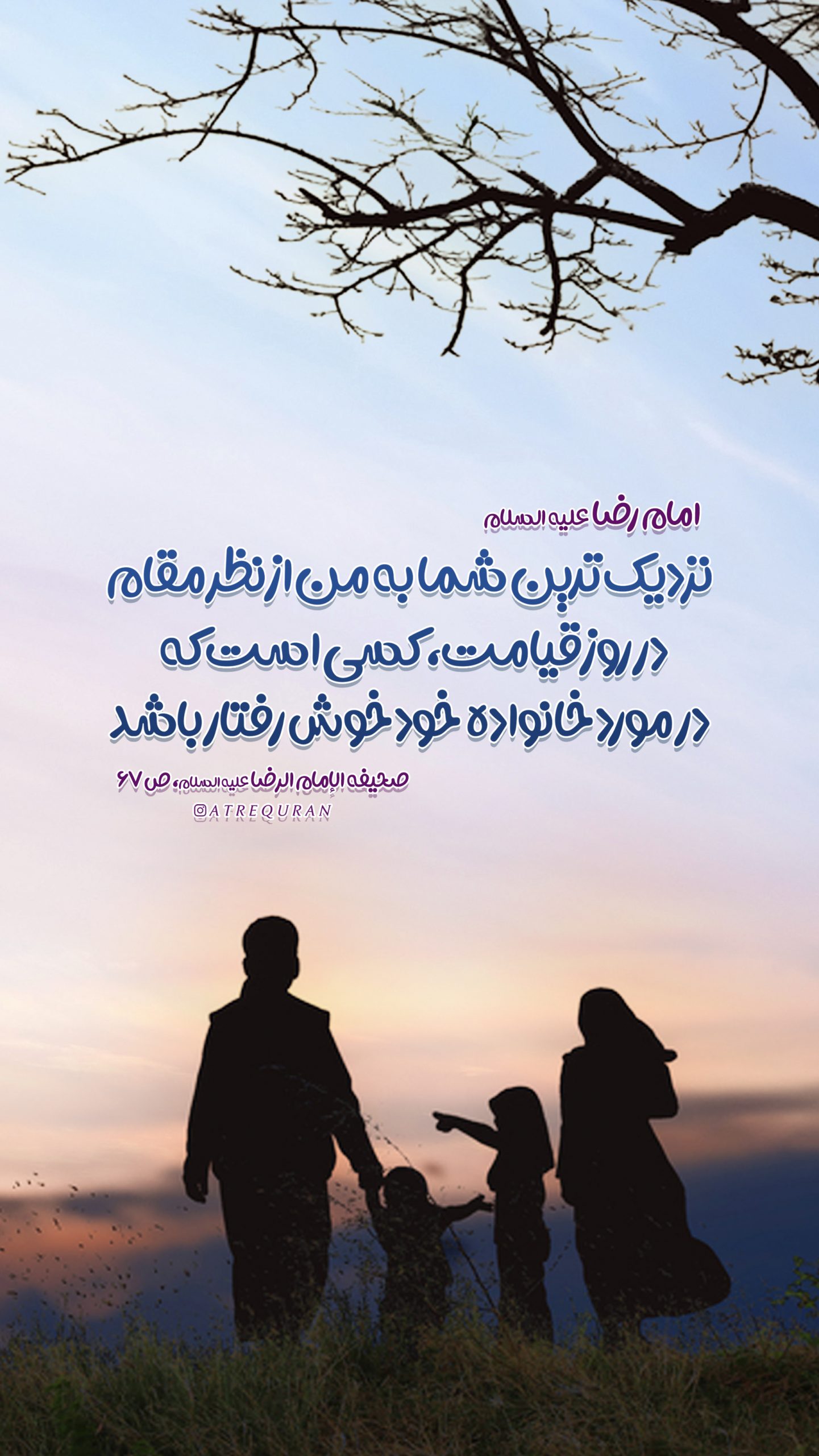 ?نزدیکترین شما به من از نظر مقام در روز قیامت، کسی است که در مورد خانواده خود خوش رفتار باشد.?