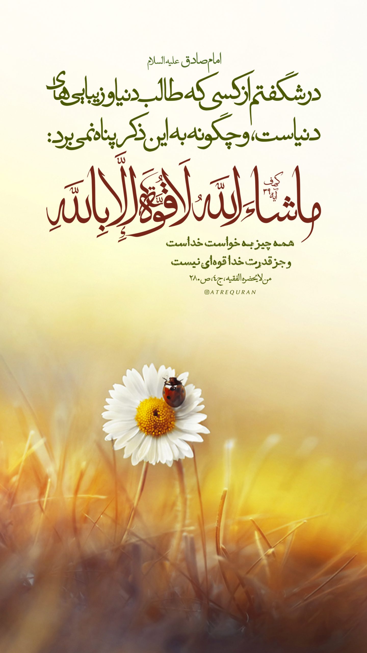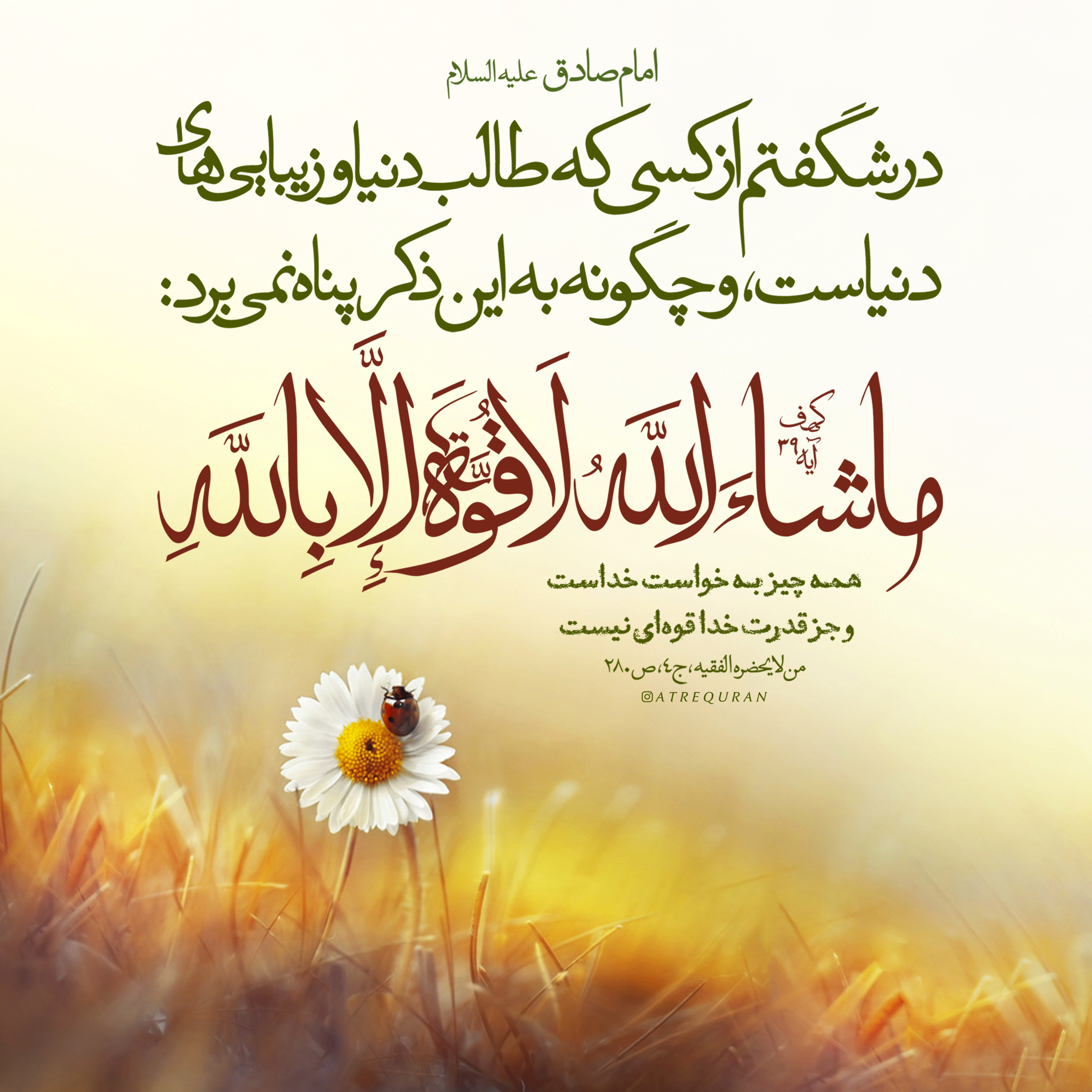 ?در شگفتم از آنکه طالب دنیا و زیباییهای دنیاست، و چرا به این ذکر پناه نمیبرد:
