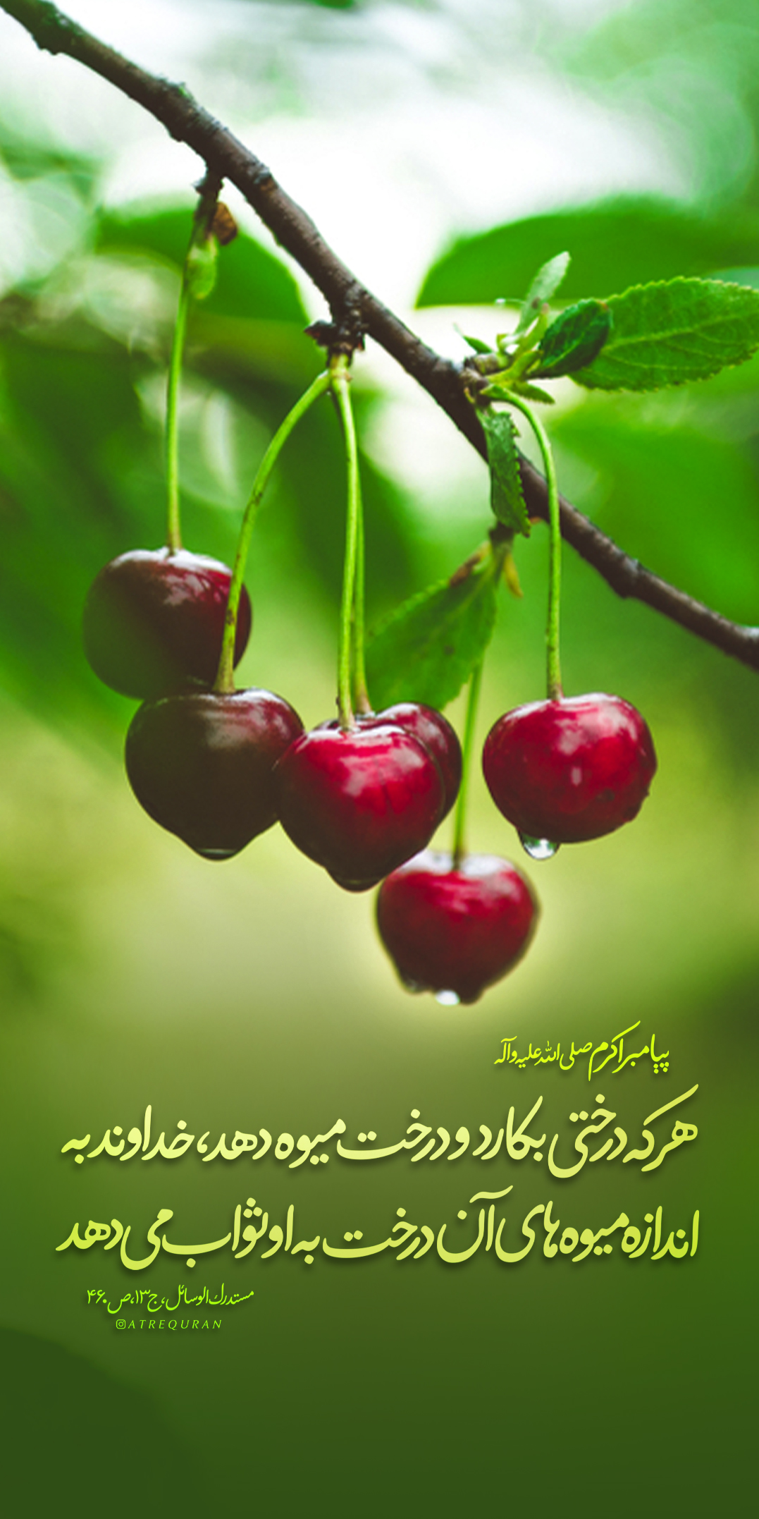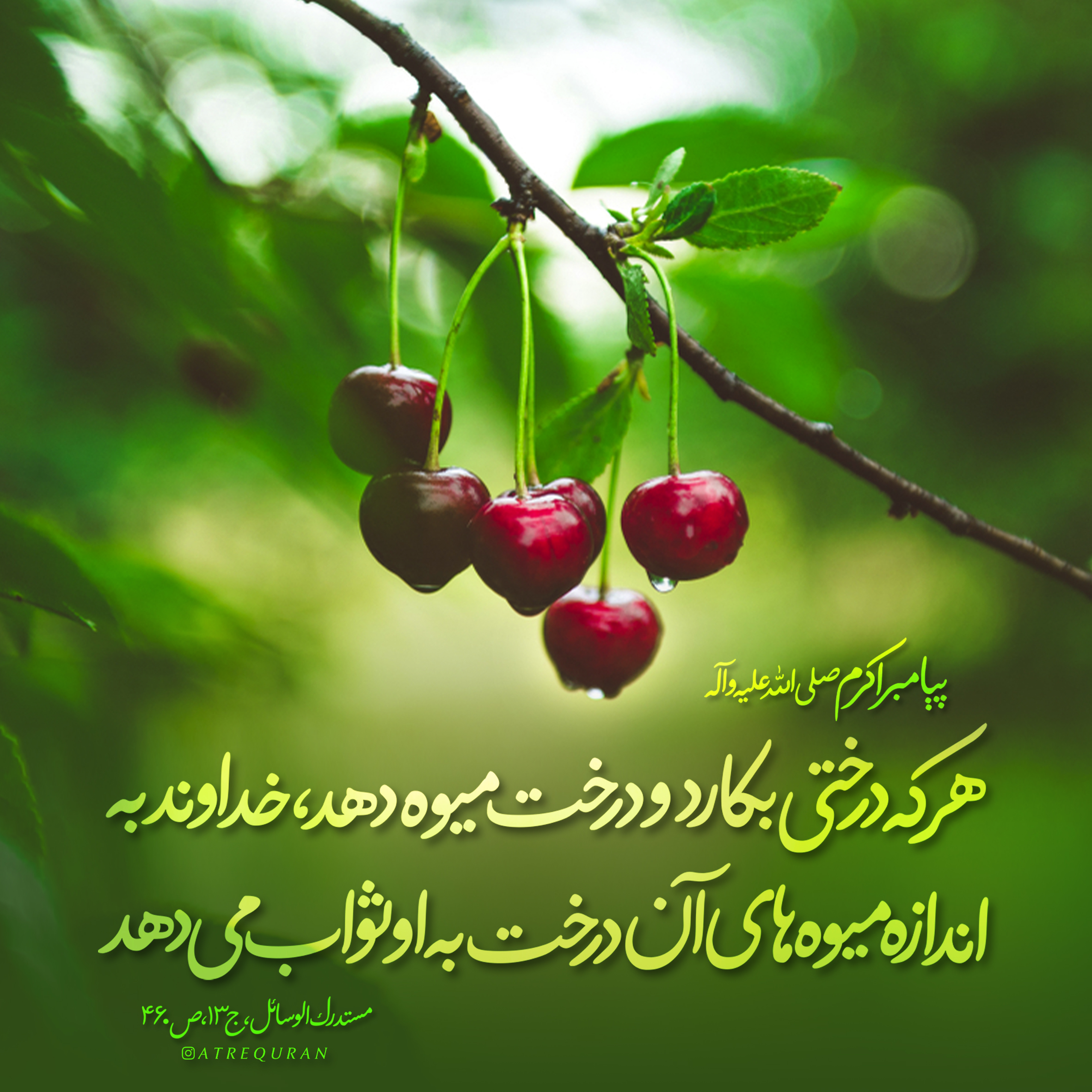 ?هر که درختی بکارد و درخت میوه دهد، خداوند به اندازه میوههای آن درخت به او ثواب میدهد.?