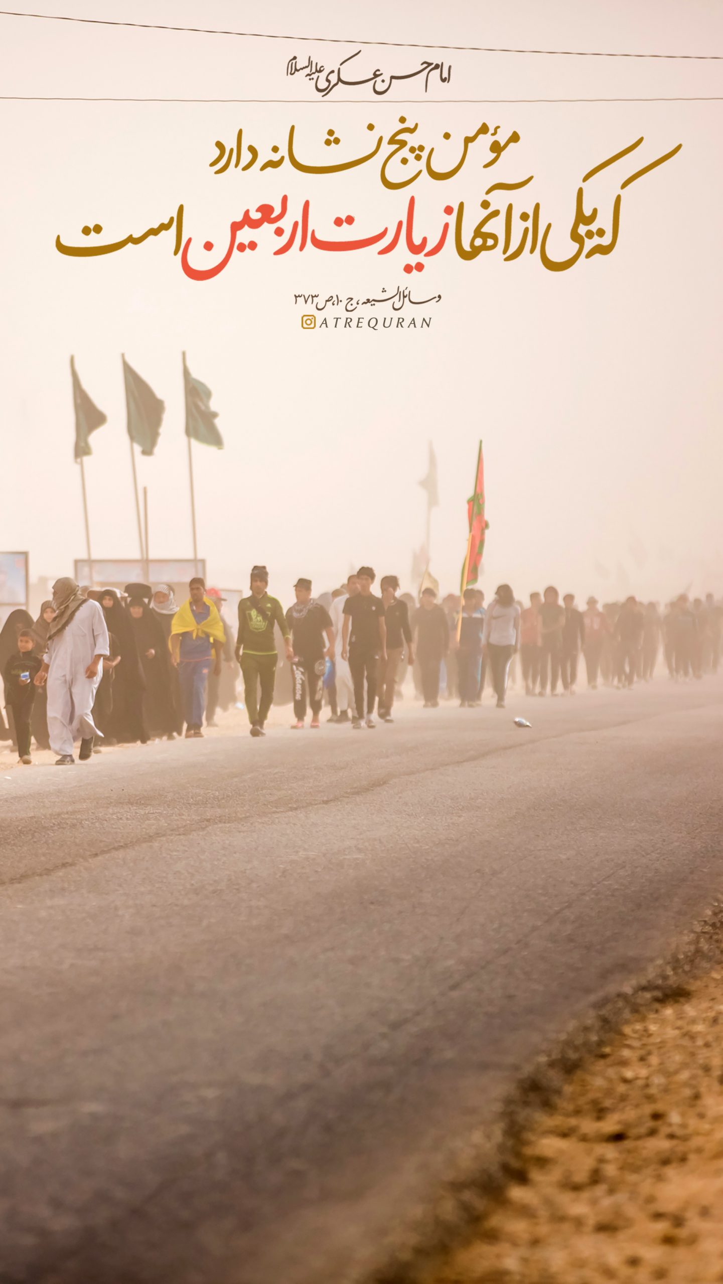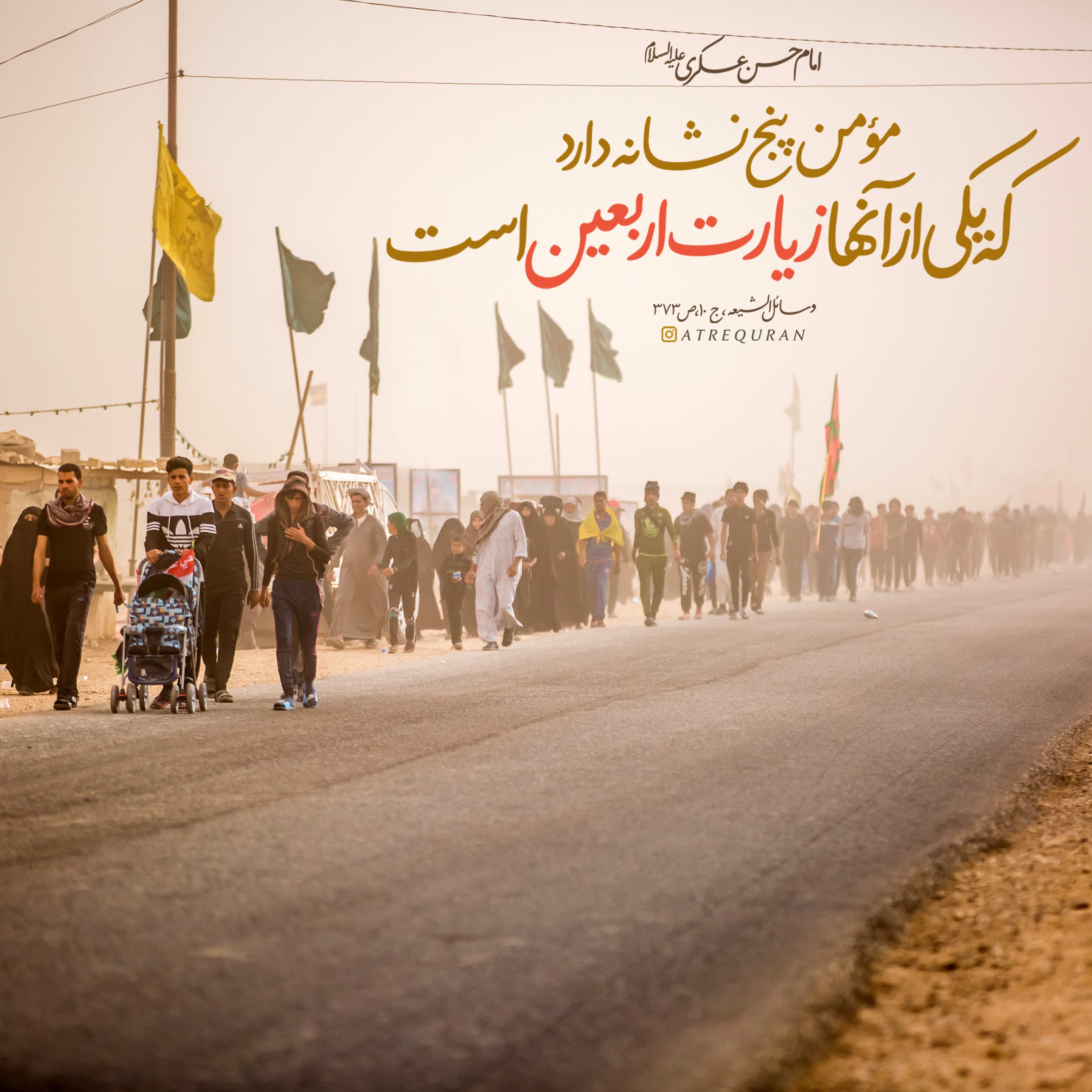 عَلَامَاتُ الْمُؤْمِنِ خَمْسٌ صَلَاةُ الْإِحْدَى وَ الْخَمْسِينَ وَ زِيَارَةُ الْأَرْبَعِينَ وَ التَّخَتُّمُ بِالْيَمِينِ وَ تَعْفِيرُ الْجَبِينِ وَ الْجَهْرُ بِ بِسْمِ اللَّهِ الرَّحْمنِ الرَّحِيمِ.