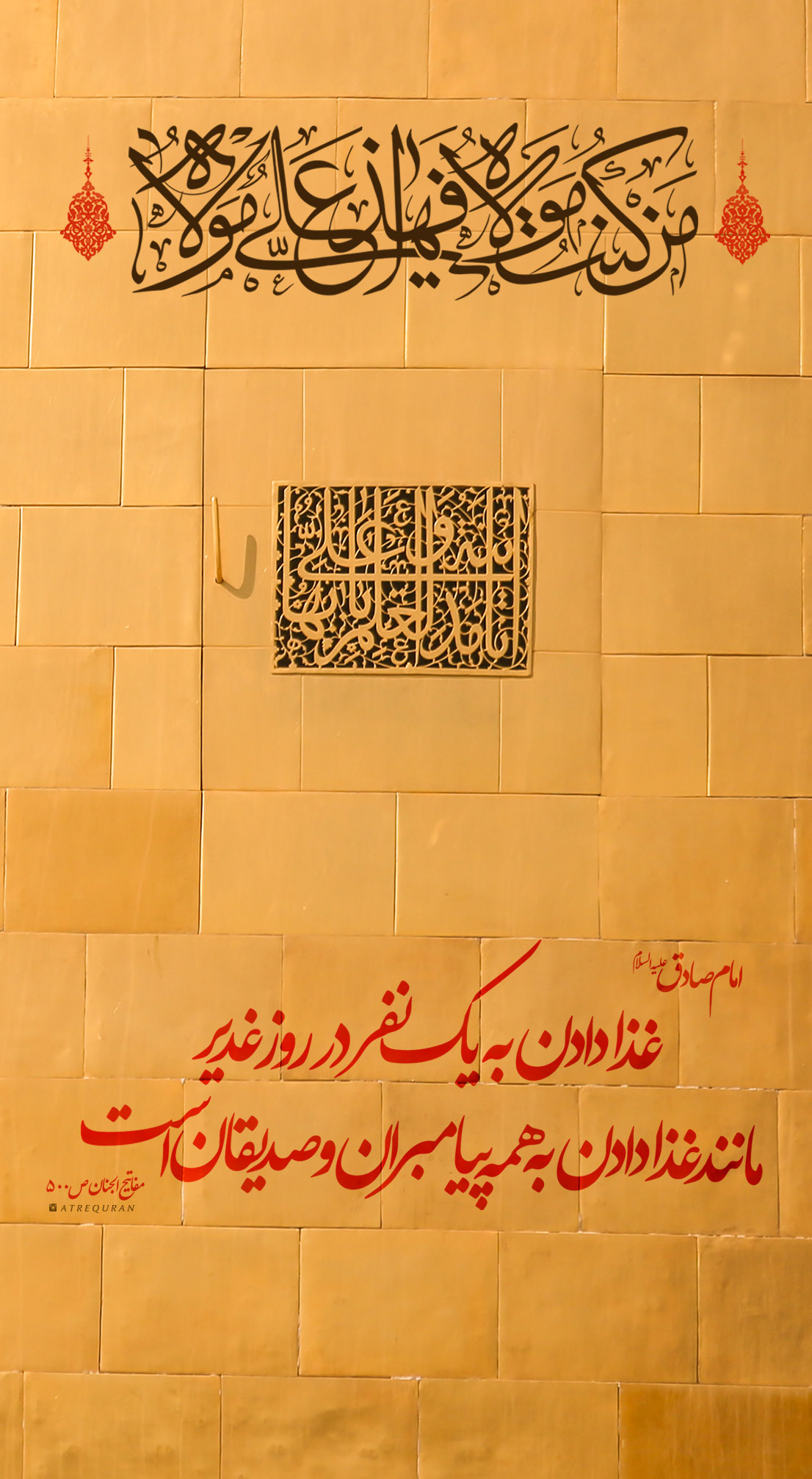 . ?امام صادق(ع) فرمود: عید غدیر، روزى است که رسول خدا(ص)، على(ع) را به عنوان پرچمدار براى مردم برافراشت و فضیلت او را در این روز آشکار کرد و جانشین خود را معرفى کرد، بعد به عنوان سپاسگزارى از خداى بزرگ آن روزه را روزه گرفت و آن روز، روز روزه دارى و عبادت و طعام دادن و به دیدار برادران دینى رفتن است. آن روز روز کسب خشنودى خداى مهربان و به خاک مالیدن بینى شیطان است: پس چه نیکوست در این عید بزرگ ضمن تهیه بهترین غذا برای خانواده، مومنین را نیز اطعام دهیم تا این سنت شریف فراموش شده احیا شود.