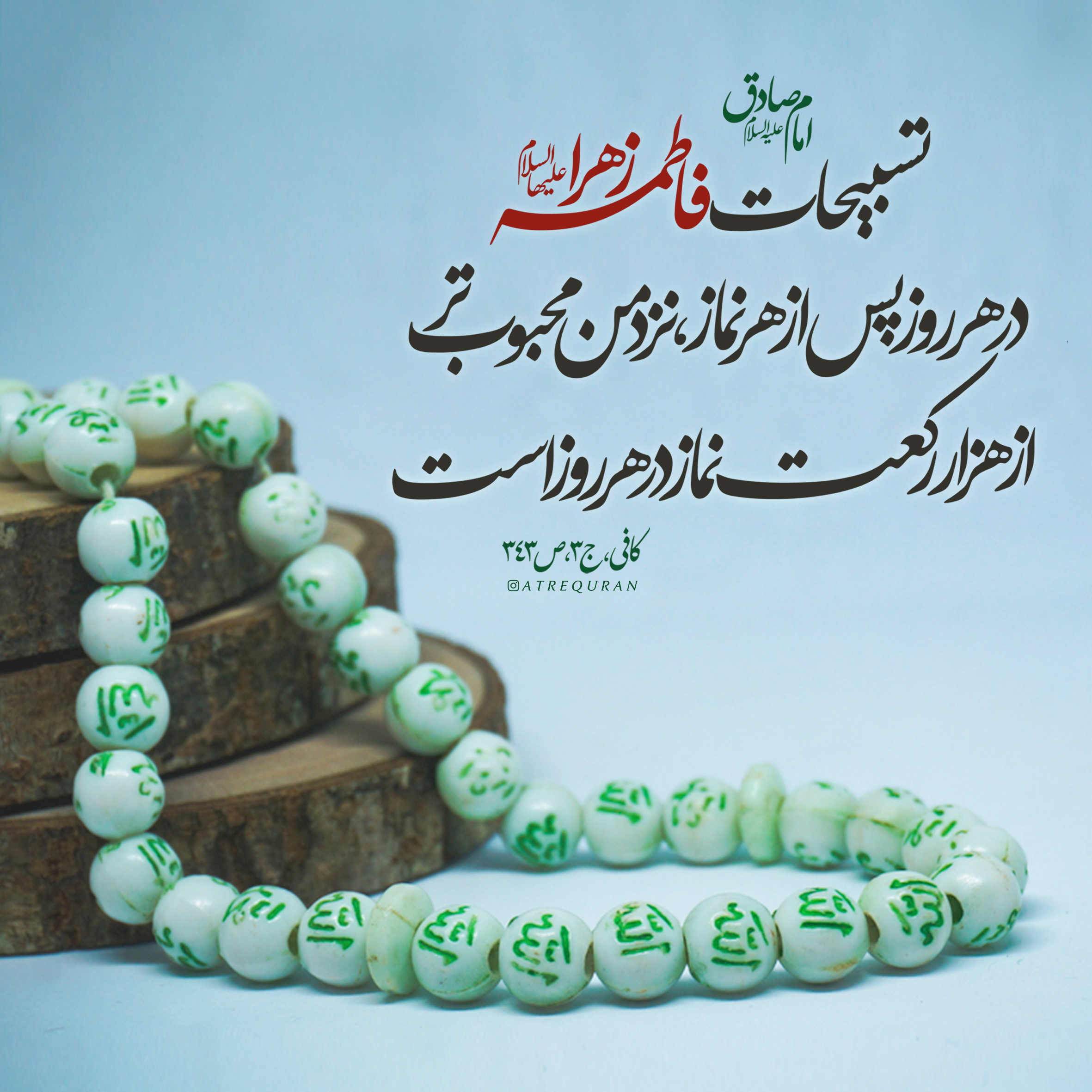 ❤️حضرت(ع) فرمود: «رسول خدا (صلى الله علیه وآله) به فاطمه علیهاالسلام یاد داد که ۳۴ بار تکبیر(الله اکبر)، ۳۳ بار تحمید(الحمدلله) و ۳۳ بار تسبیح(سبحان الله) بگوید. پس اگر تو یک بار شب و یک بار روز این کار را انجام دهى، در حقیقت خدا را با ذکر بسیار یاد کرده اى».(5)