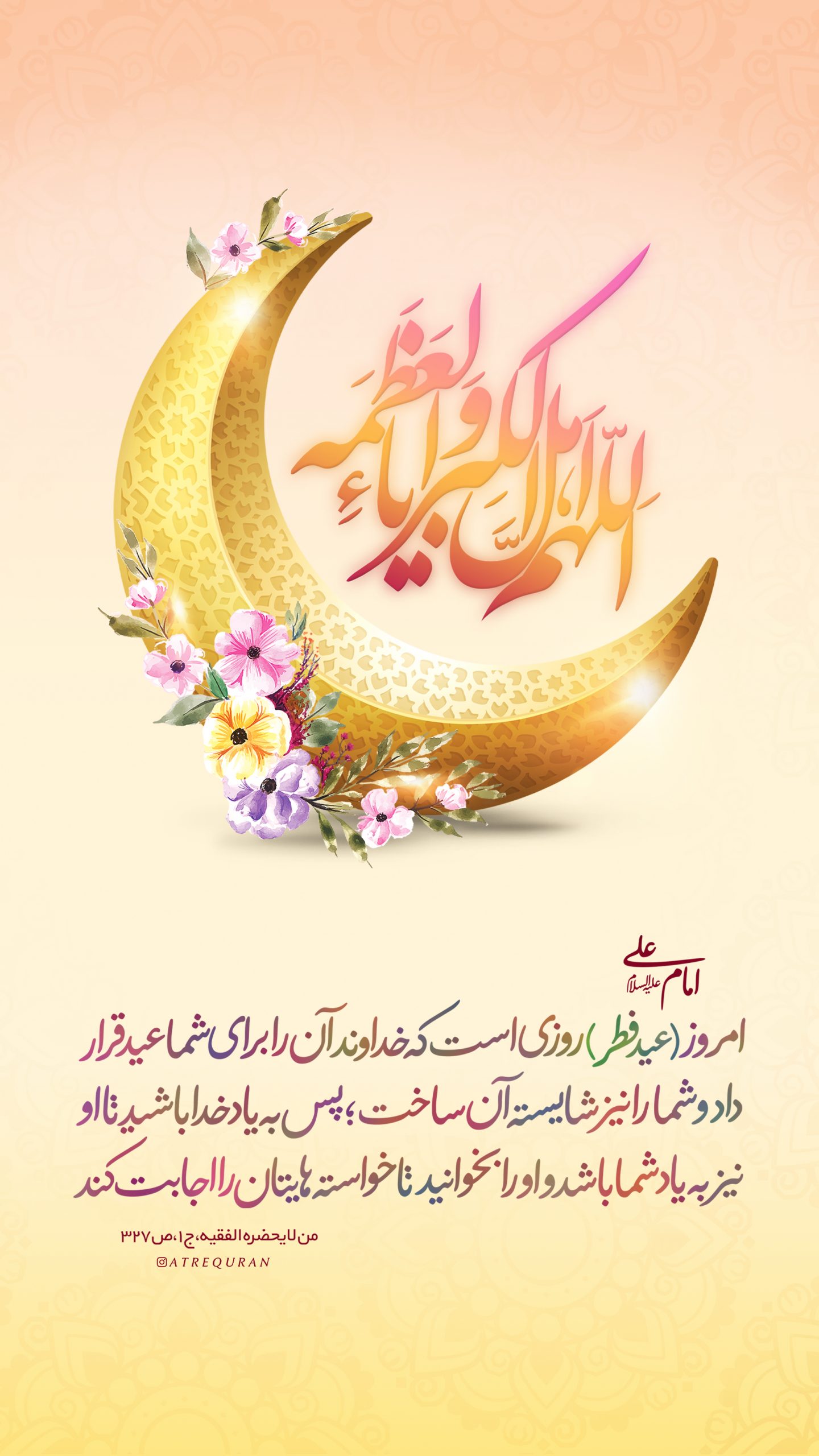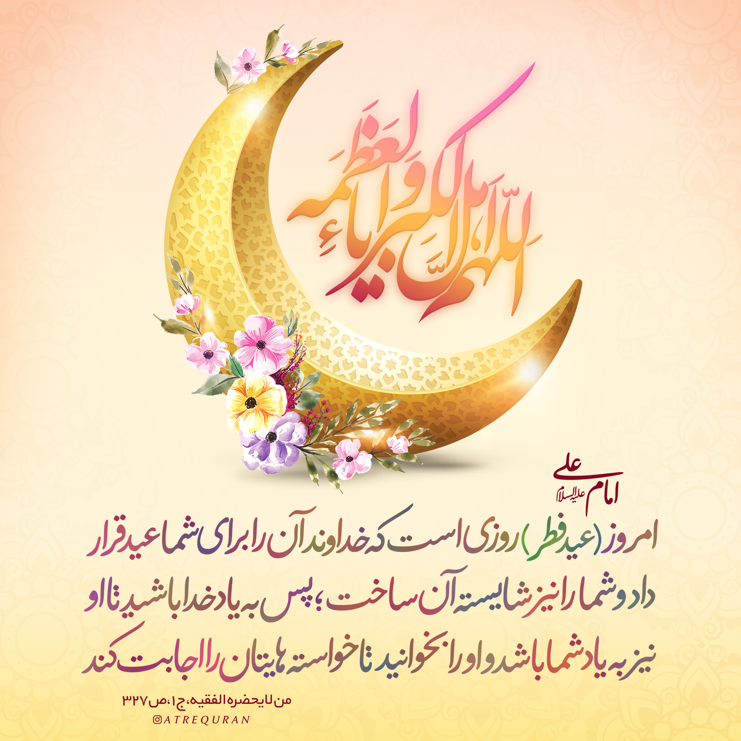 ?امروز (عیدفطر) روزی است كه خداوند آن را برای شما عید قرار داد و شما را نیز شایسته آن ساخت؛ پس به یاد خدا باشید تا او نیز به یاد شما باشد و او را بخوانید تا خواستههایتان را اجابت كند.?