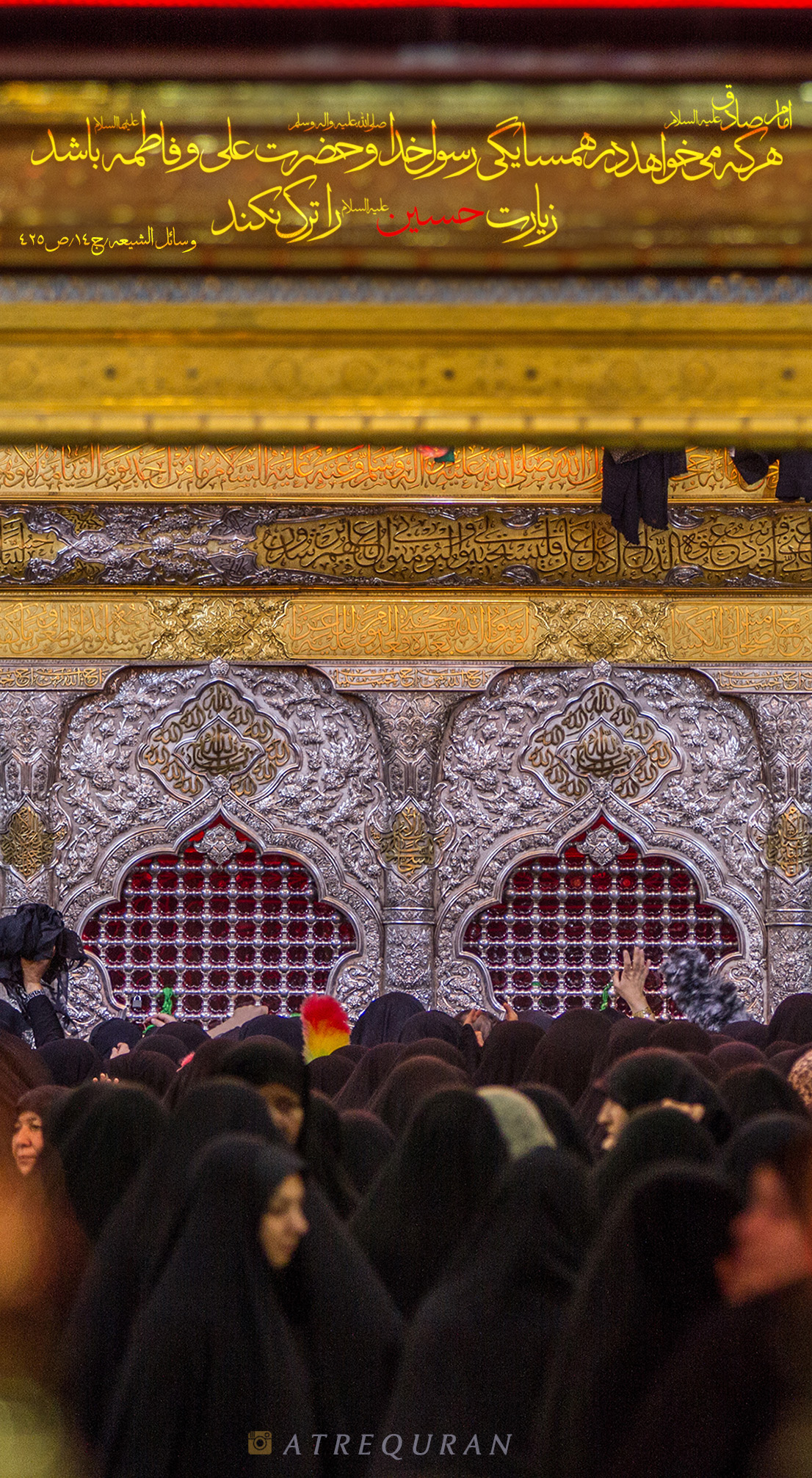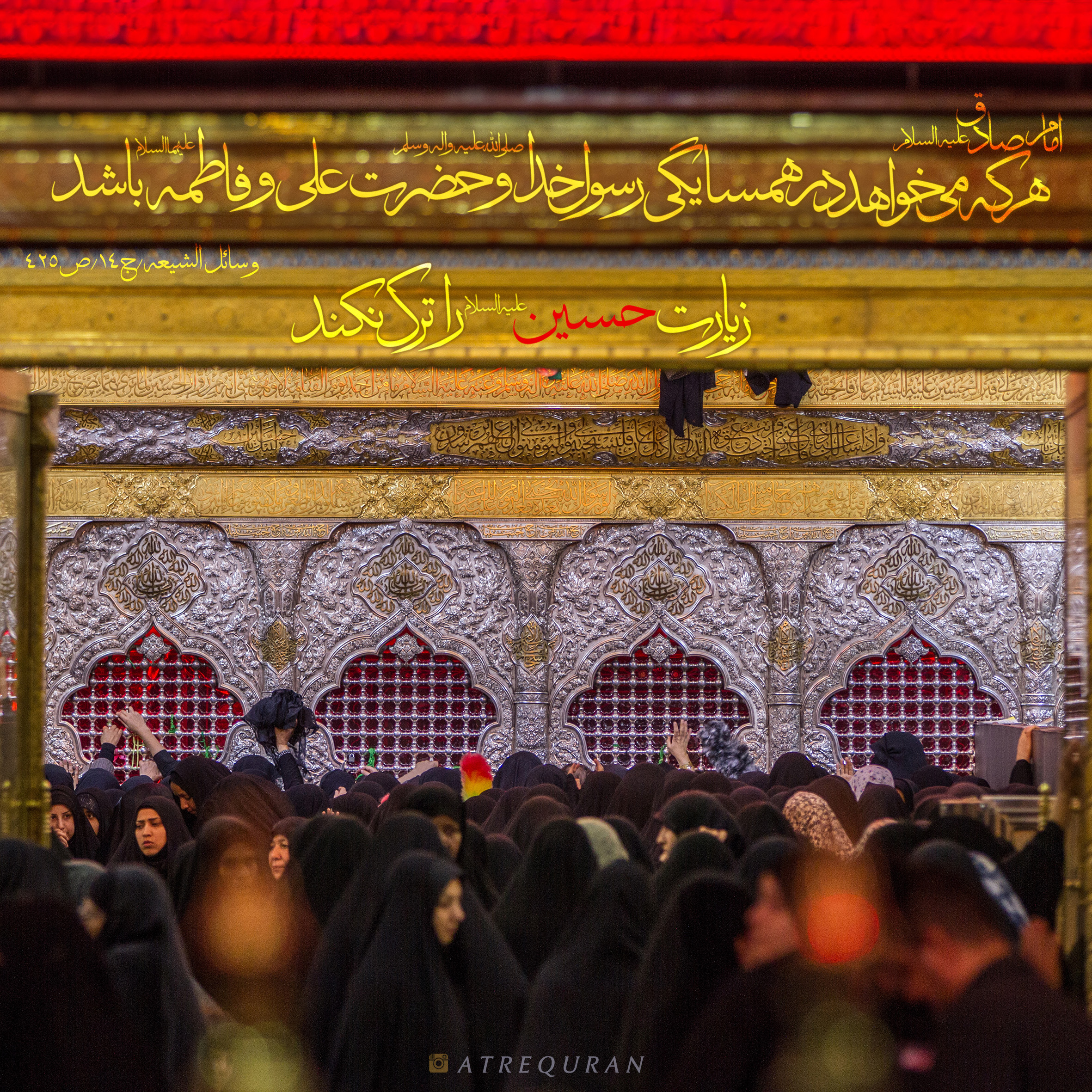 ◀️عَنْ أَبِی عَبْدِ اللَّهِ ع قَالَ مَنْ أَرَادَ أَنْ یَکُونَ فِی جِوَارِ نَبِیِّهِ وَ جِوَارِ عَلِیٍّ وَ فَاطِمَةَ فَلَا یَدَعْ زِیَارَةَ الْحُسَیْنِ ع . . ?امام صادق علیه السلام فرمودند: هر که میخواهد در همسایگی رسول خدا (صلی الله علیه وآله) و حضرت علی و حضرت فاطمه (علیهاالسلام) باشد، زیارت امام حسین علیه السلام را ترک نکند. . . ?( وسائل الشیعه/ج14/ص425) . . ♦️روایات دیگر در اهمیت زیارت امام حسین علیه السلام ? . . 1-خیرخواهی خداوند? . . عَنْ أَبِی عَبْدِ اللَّهِ علیه السلام قَالَ مَنْ أَرَادَ اللَّهُ بِهِ الْخَیْرَ قَذَفَ فِی قَلْبِهِ حُبَّ الْحُسَیْنِ علیه السلام وَ حُبَّ زِیَارَتِهِ وَ مَنْ أَرَادَ اللَّهُ بِهِ السُّوءَ قَذَفَ فِی قَلْبِهِ بُغْضَ الْحُسَیْنِ علیه السلام وَ بُغْضَ زِیَارَتِهِ . . ?امام صادق علیه السلام فرمودند: . . ◀️هرکسی که خداوند خیرش را بخواهد، حب امام حسین علیه السلام و حب زیارتش را در قلب او میاندازد و هر که را خداوند بدیش را بخواهد، بغض نسبت به امام حسین علیه السلام و بغض زیارت آن حضرت را در قلب او می اندازد.(وسائل الشیعه/ج14/ص496) . . 2-حسرت در روز قیامت? . . ◀️عَنْ أَبِی عَبْدِ اللَّهِ ع مَا مِنْ أَحَدٍ یَوْمَ الْقِیَامَةِ إِلَّا وَ هُوَ یَتَمَنَّى أَنَّهُ زَارَ الْحُسَیْنَ بْنَ عَلِیٍّ ع لَمَّا یَرَى لِمَا یُصْنَعُ بِزُوَّارِ الْحُسَیْنِ بْنِ عَلِیٍّ مِنْ کَرَامَتِهِمْ عَلَى اللَّهِ از امام صادق علیه السلام روایت شده: هیچ کس نیست در روز قیامت مگر اینکه آرزو میکند ای کاش امام حسین علیه السلام را زیارت کرده بودم آن هنگامی که می بیند که با زوار امام حسین علیه السلام چه میکنند، چقدر نزد خداوند مورد کرامت واقع میشوند. (وسائل الشیعه/ ج14/ص424) . . 3-زیارت خداوند . . ◀️عَنْ أَبِی الْحَسَنِ الرِّضَا ع قَالَ مَنْ زَارَ قَبْرَ أَبِی عَبْدِ اللَّهِ ع بِشَطِّ الْفُرَاتِ کَمَنْ زَارَ اللَّهَ فَوْقَ عَرْشِهِ . . امام رضا علیه السلام فرمودند: هر کس اباعبدلله علیه السلام را کنار شط فرات زیارت کند، مانند کسی است که خداوند را در بالای عرش زیارت کرده است. ( تهذیب الأحکام ج : 6 ص : 46) . . . ? @AtreQuran ? . .