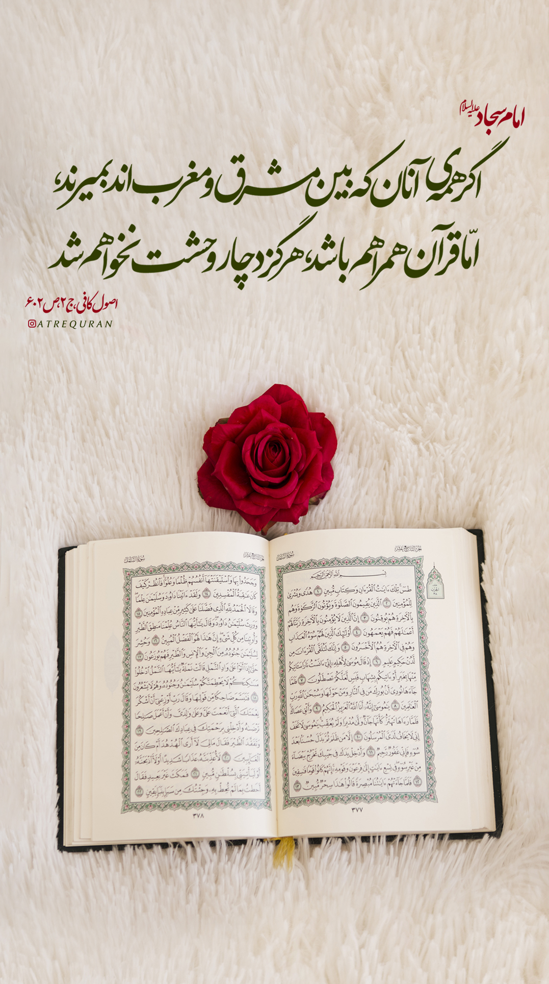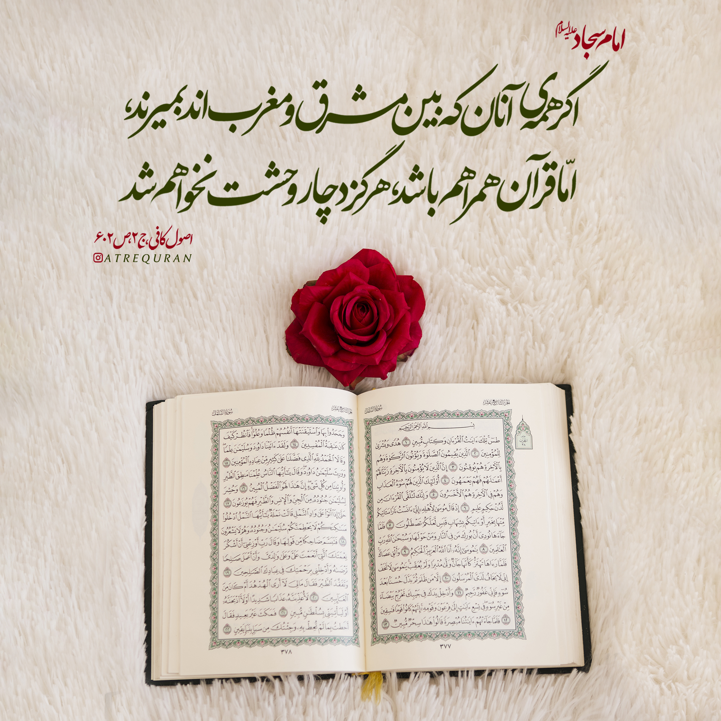 اگر همهی آنان که بین مشرق و مغرباند بمیرند، امّا قرآن همراهم باشد هرگز دچار وحشت نخواهم شد.