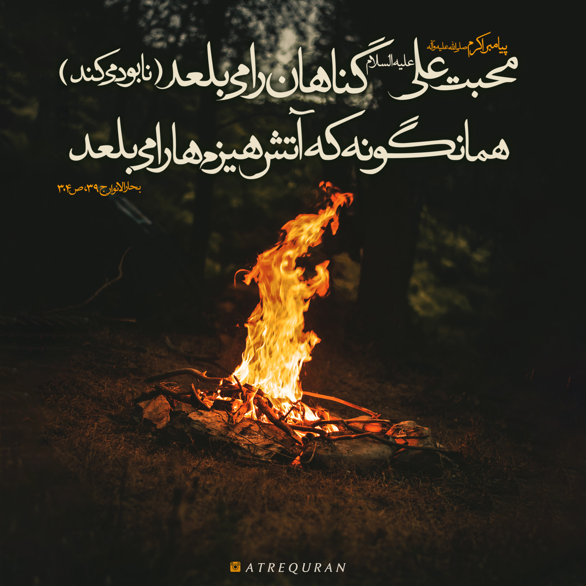 . .♦️محبت علي عليه السّلام گناهان را ميبلعد (نابود مي کند)، همانگونه كه آتش چوبها را ميبلعد.