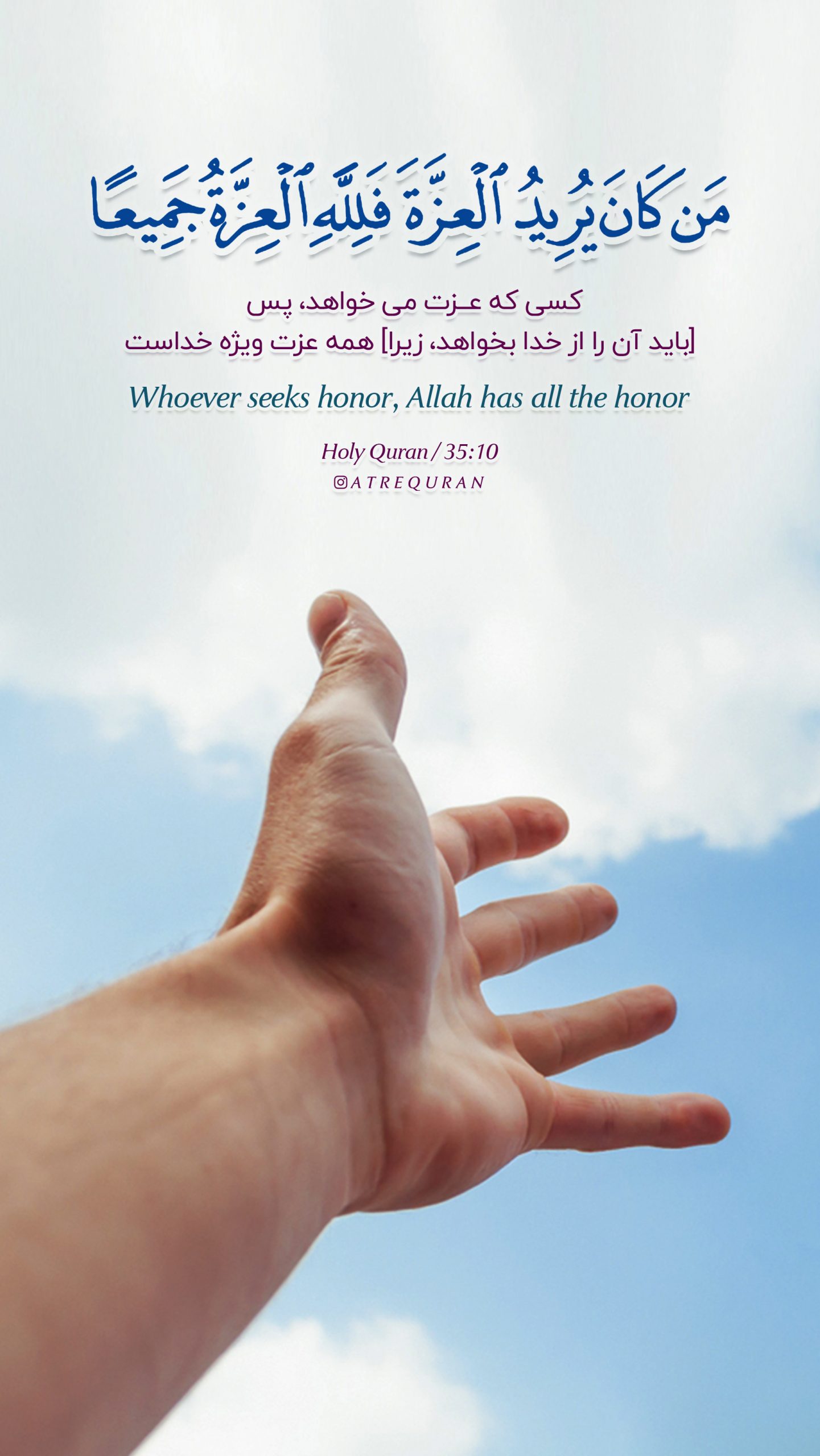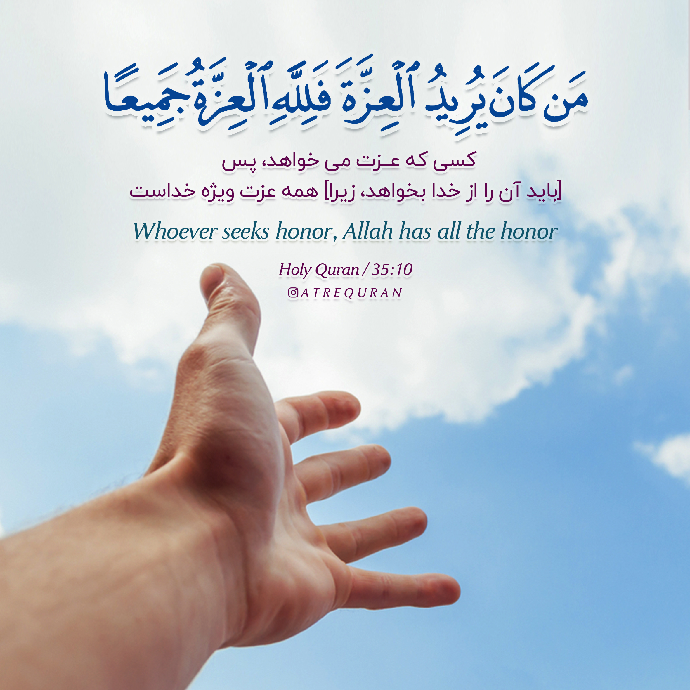 مَنْ كانَ يُرِيدُ الْعِزَّةَ فَلِلَّهِ الْعِزَّةُ جَمِيعاً إِلَيْهِ يَصْعَدُ الْكَلِمُ الطَّيِّبُ وَ الْعَمَلُ الصَّالِحُ يَرْفَعُهُ وَ الَّذِينَ يَمْكُرُونَ السَّيِّئاتِ لَهُمْ عَذابٌ شَدِيدٌ وَ مَكْرُ أُولئِكَ هُوَ يَبُورُ «10»