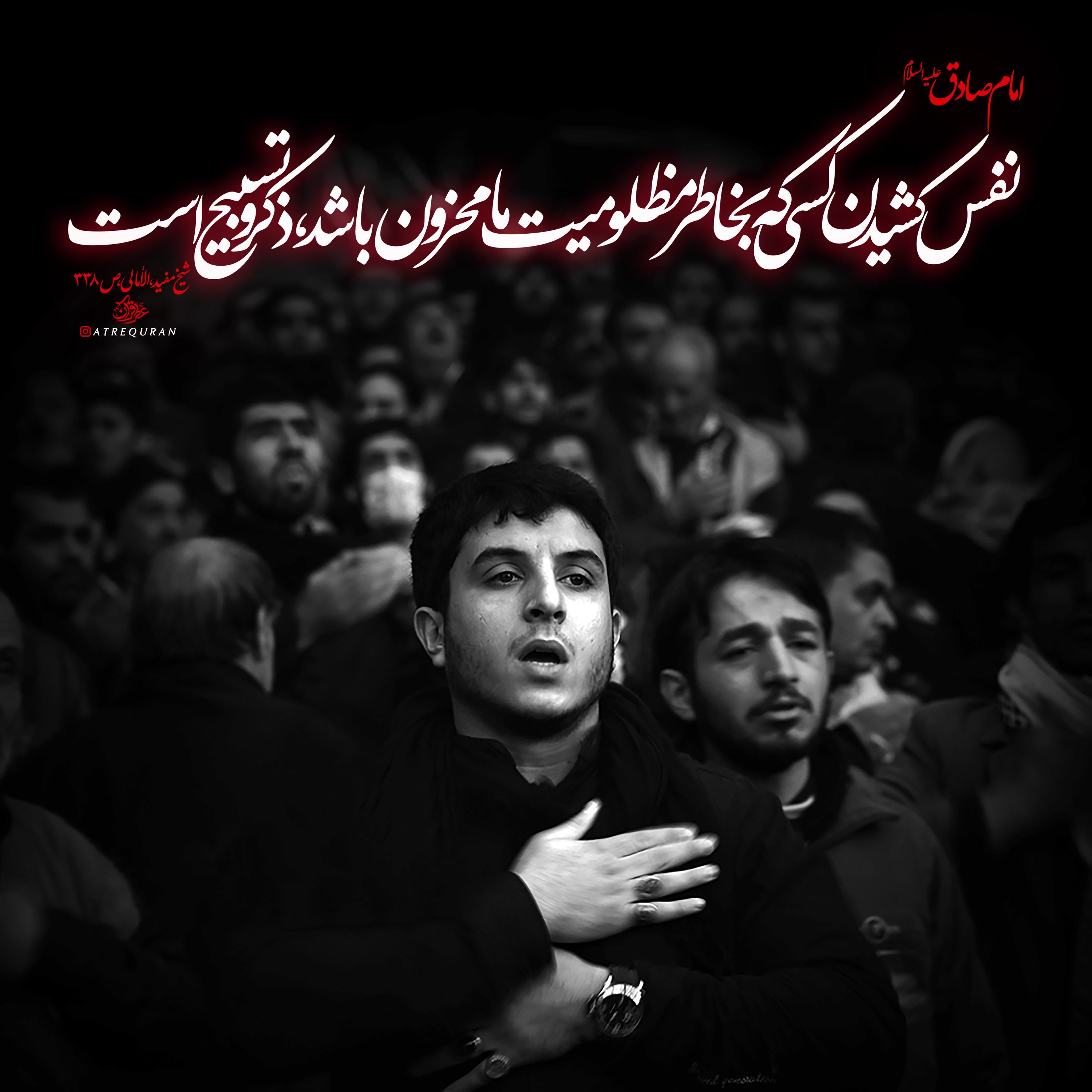 امام صادق علیه السلام فرمود: نفس کسى که بخاطر مظلومیت ما اندوهگین شود، تسبیح است و اندوهش براى ما، عبادت است و پوشاندن راز ما جهاد در راه خداست. سپس امام صادق علیه السلام افزود: این حدیث را باید با طلا نوشت!