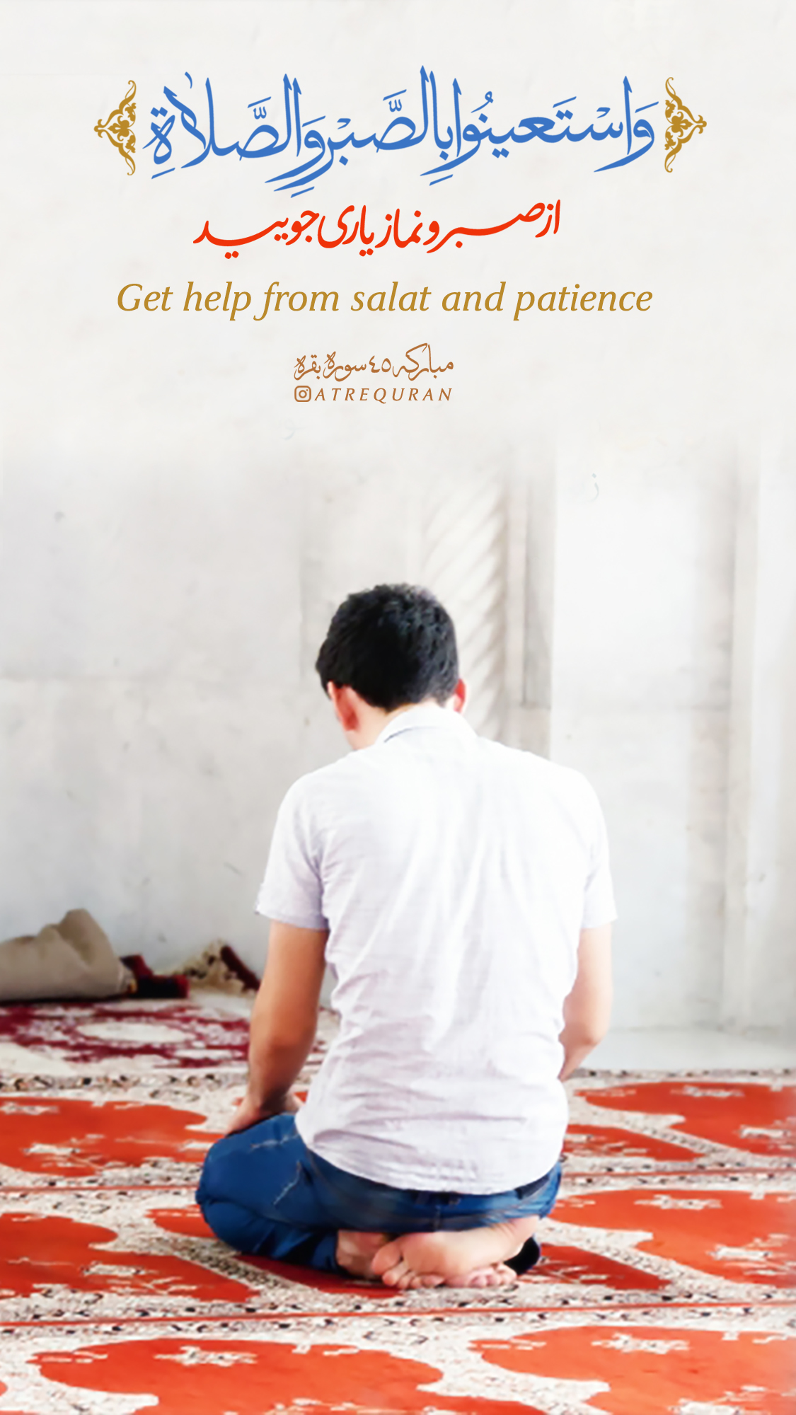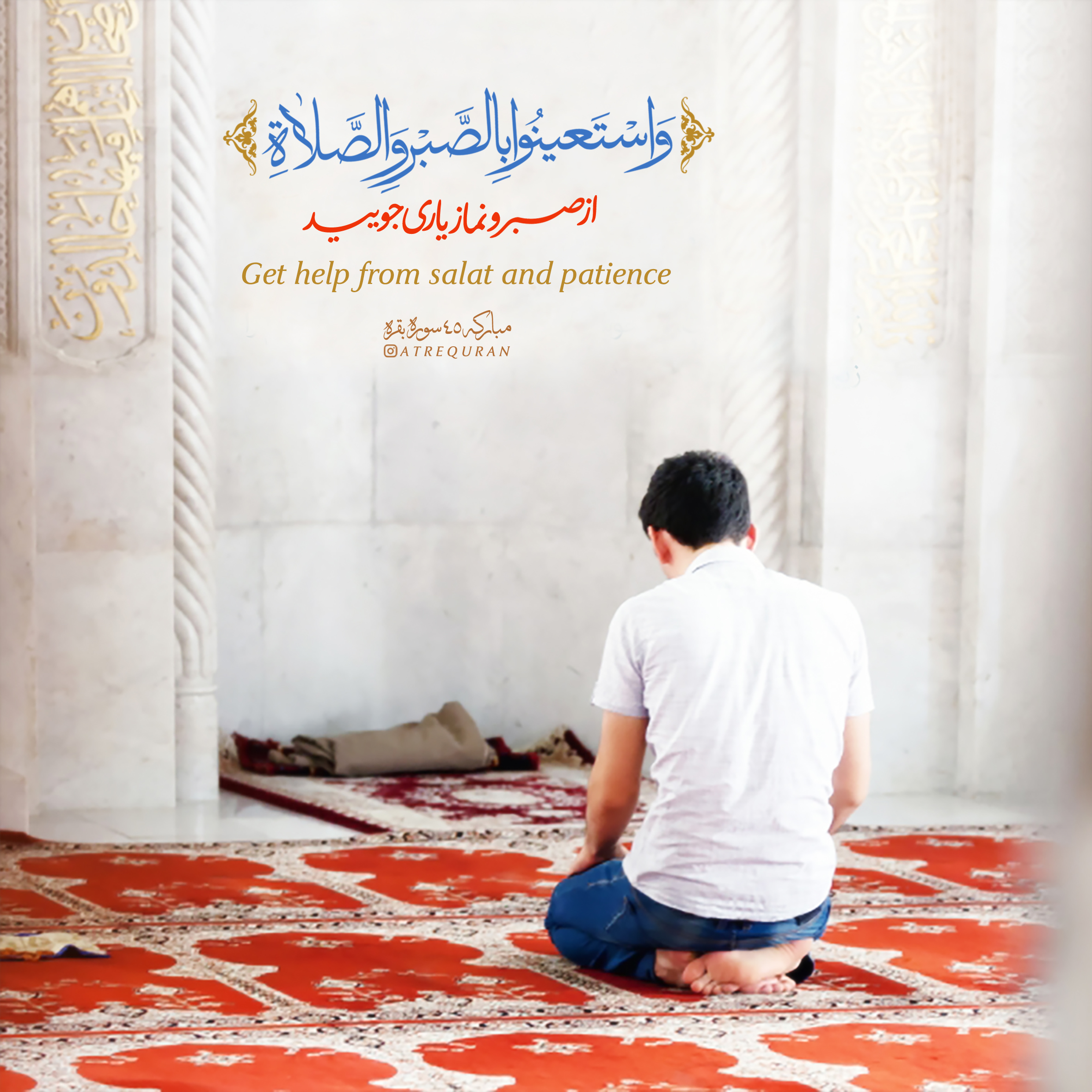 آیه صبر و نماز در قرآن: واستعینوا بالصبر و الصلاه+عکس نوشته