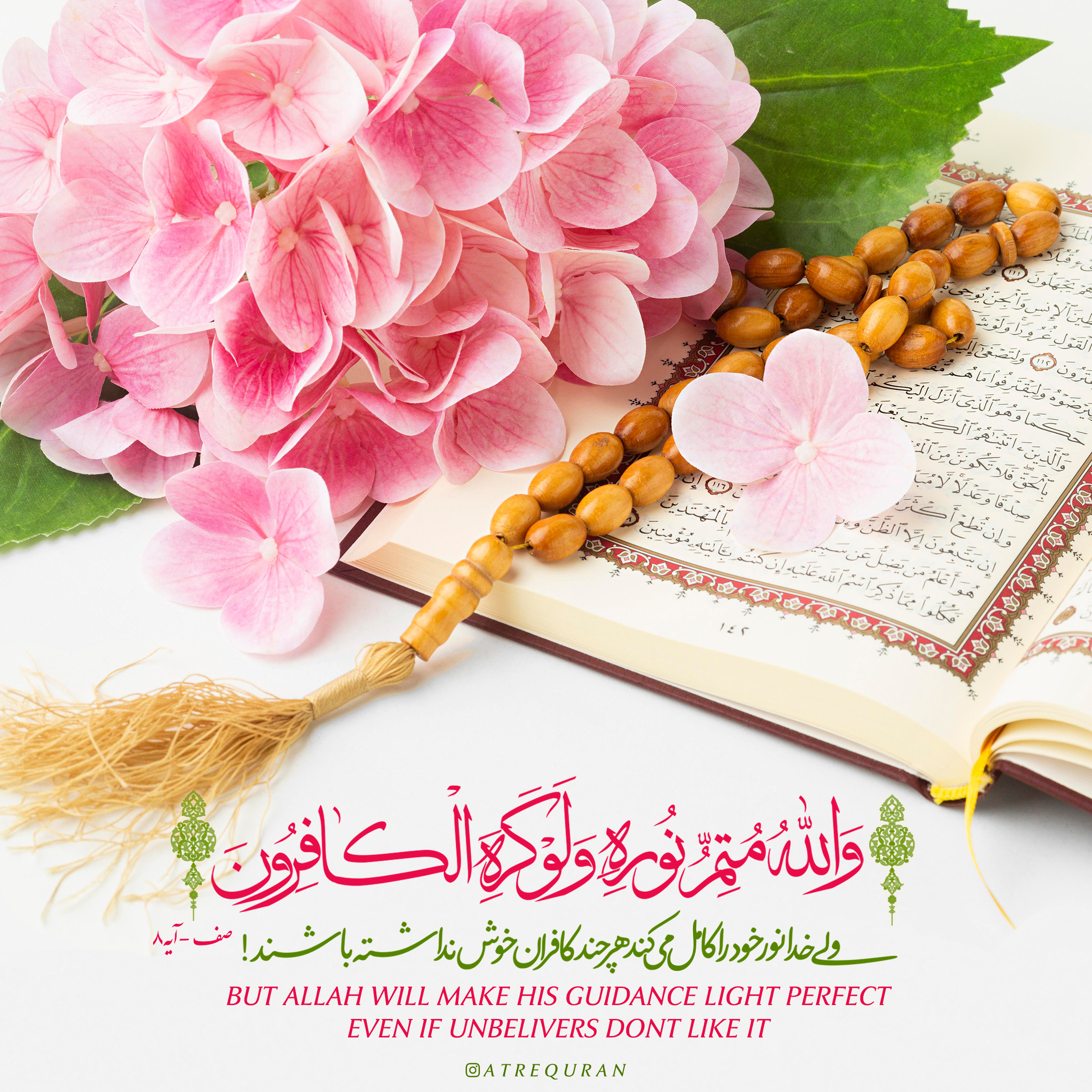 ?می خواهند نور خدا را با دهان هایشان خاموش کنند در حالی که خدا کامل کننده نور خود است، گرچه کافران خوش نداشته باشند.