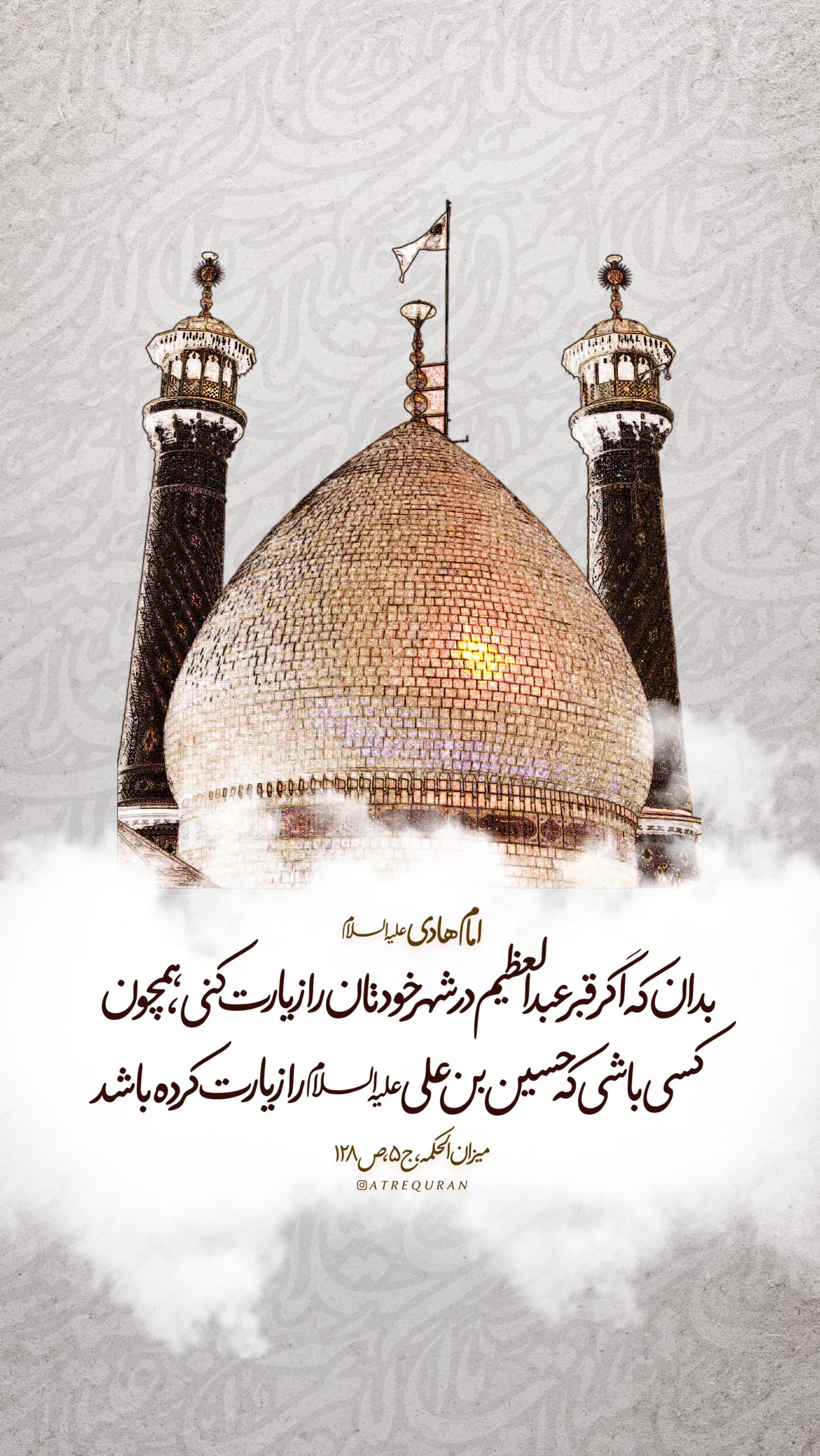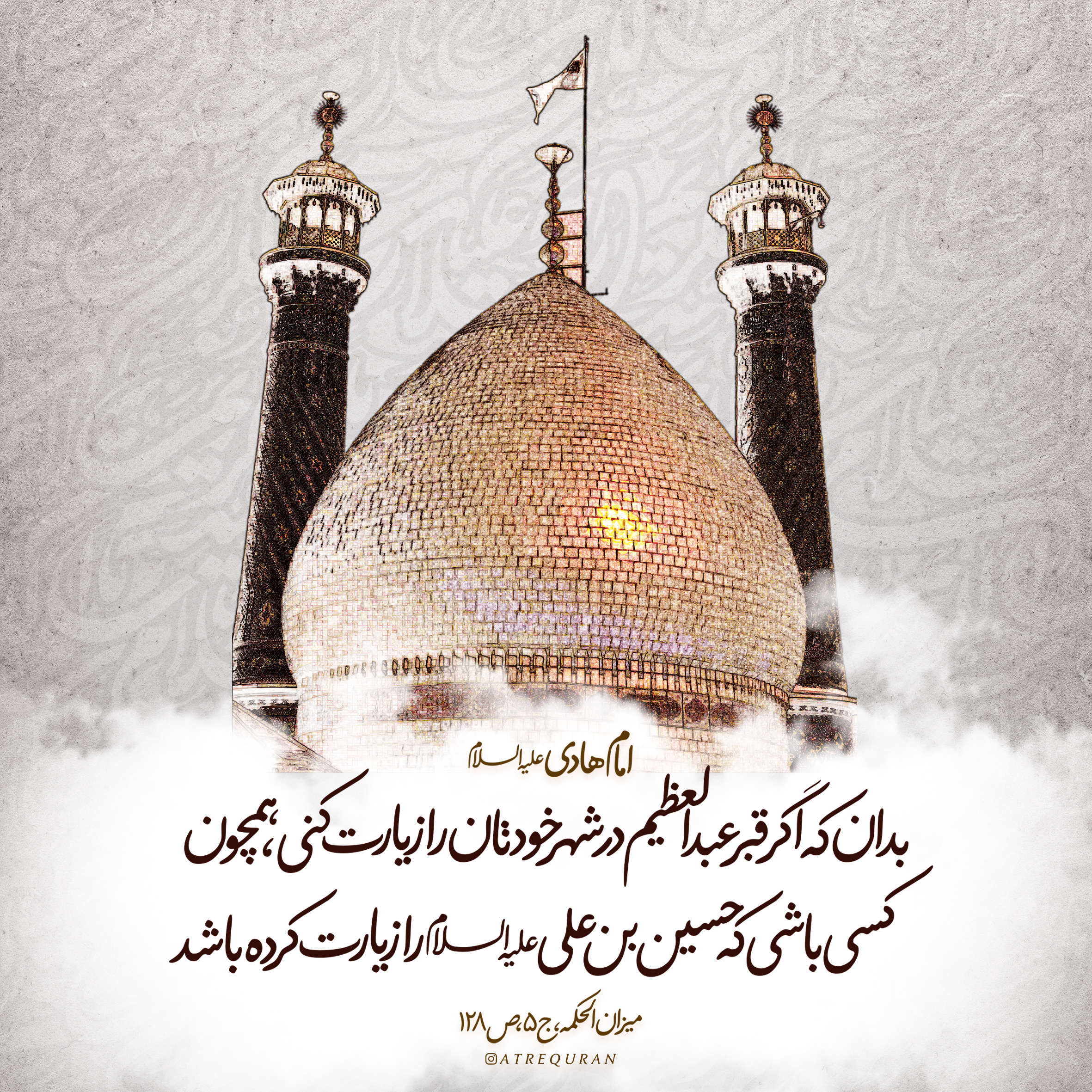 (خطاب به یکی از اهالی ری)بدان که اگر قبر عبد العظیم در شهر خودتان را زیارت کنى، همچون کسى باشى که حسین بن على علیه السلام را زیارت کرده باشد.
