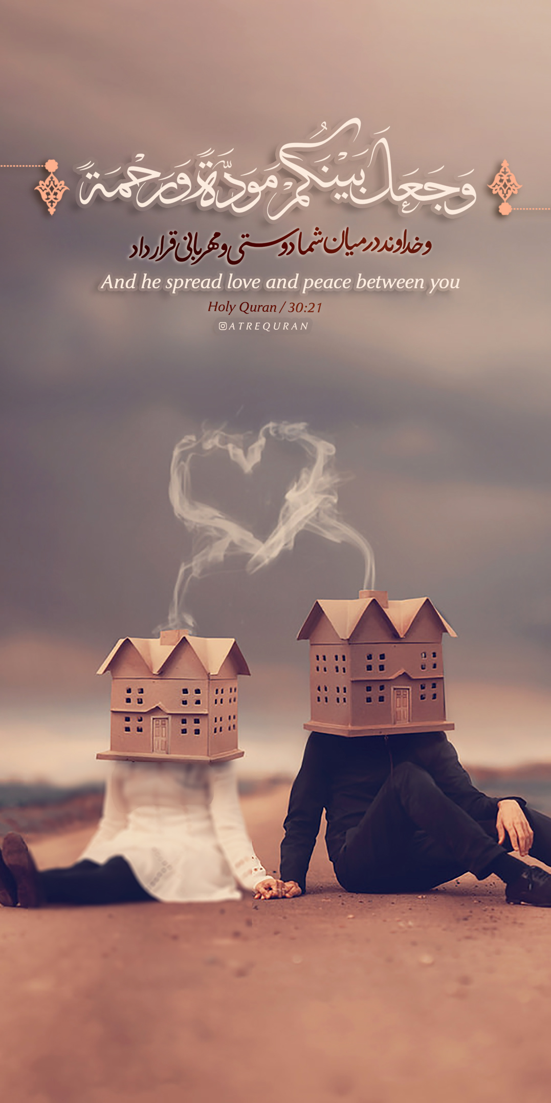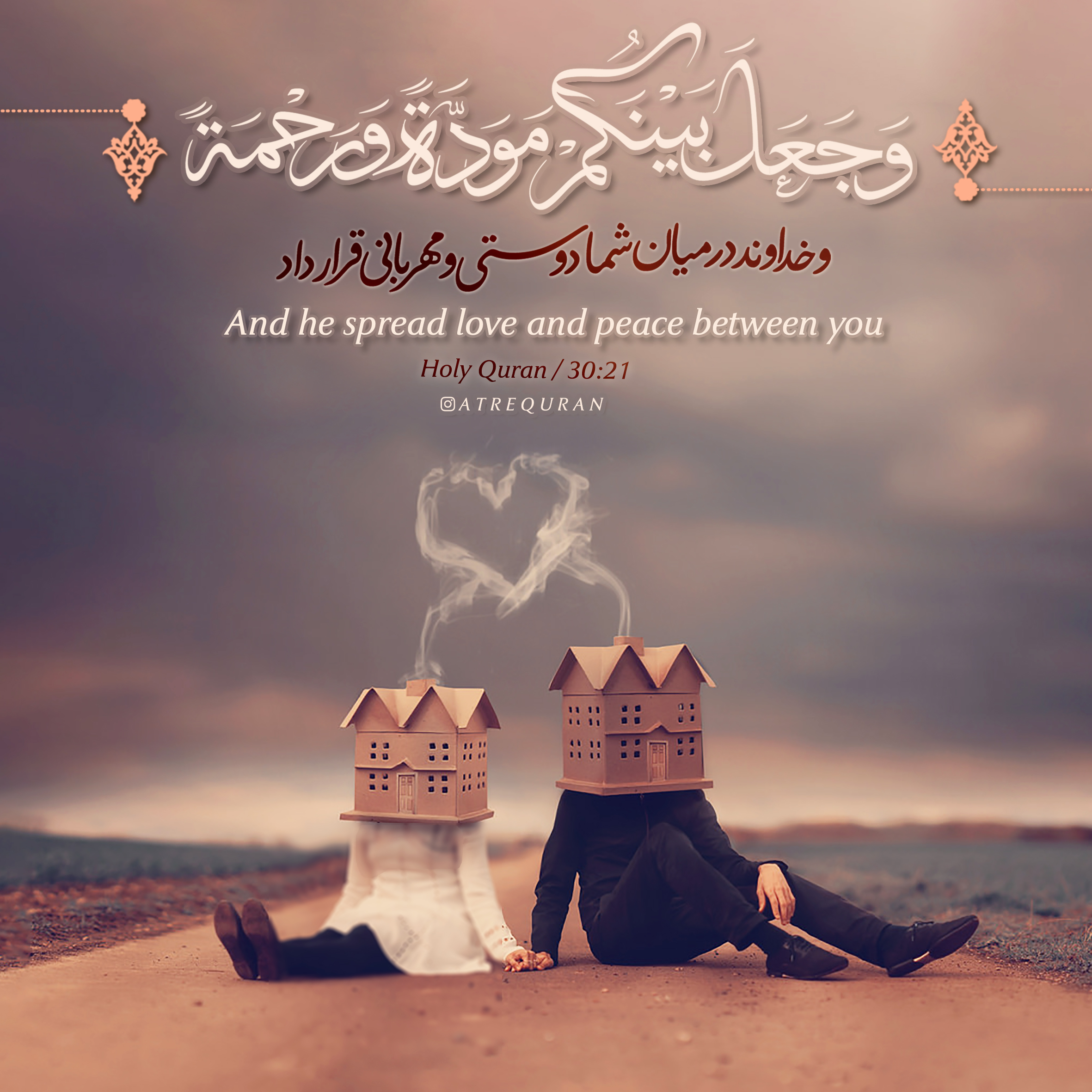 وَ مِنْ آياتِهِ أَنْ خَلَقَ لَكُمْ مِنْ أَنْفُسِكُمْ أَزْواجاً لِتَسْكُنُوا إِلَيْها وَ جَعَلَ بَيْنَكُمْ مَوَدَّةً وَ رَحْمَةً إِنَّ فِي ذلِكَ لَآياتٍ لِقَوْمٍ يَتَفَكَّرُونَ «آیه 21 سوره روم»