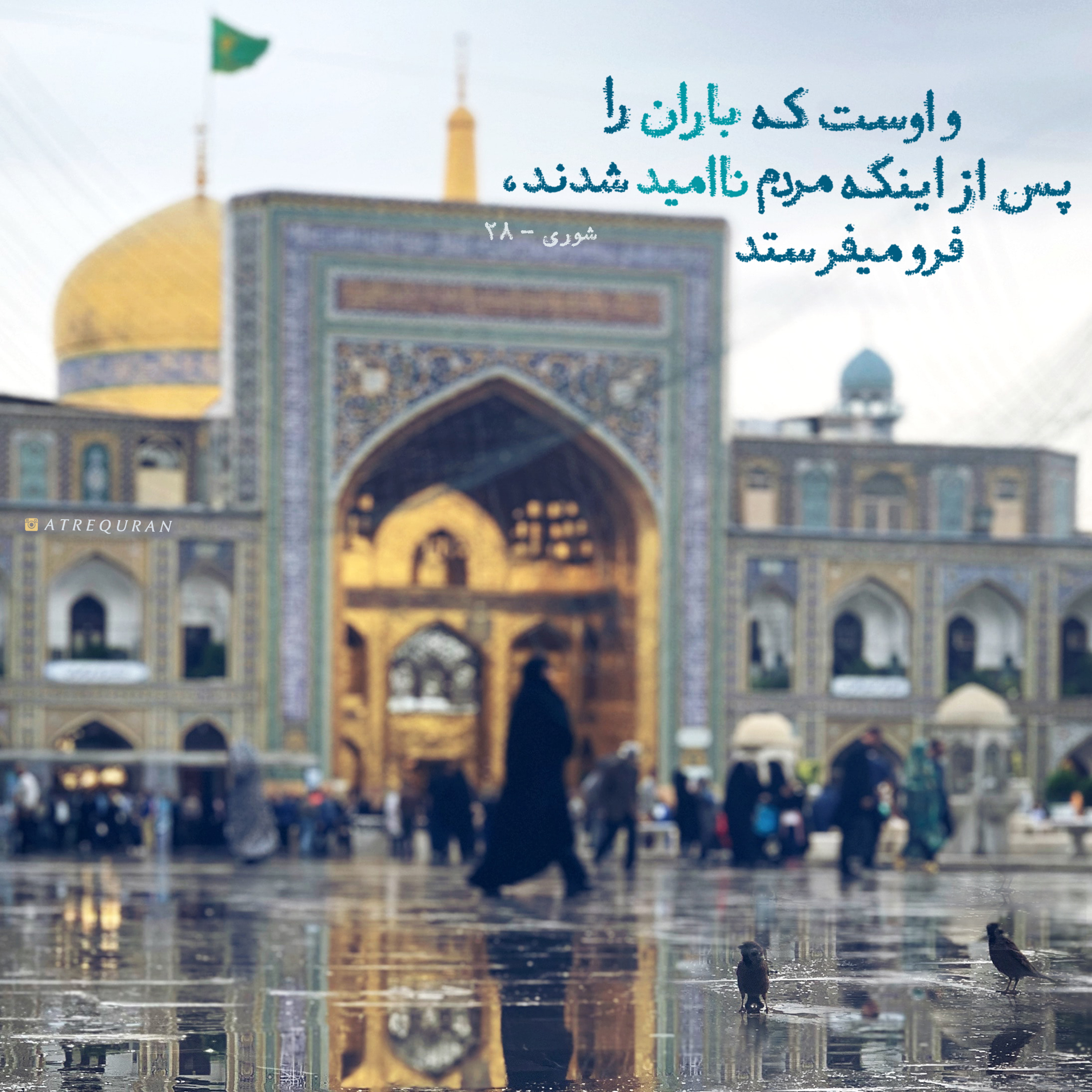 3- باران، نمودى از رحمت الهى است. يُنَزِّلُ الْغَيْثَ … وَ يَنْشُرُ رَحْمَتَهُ