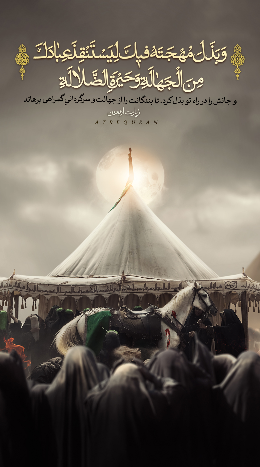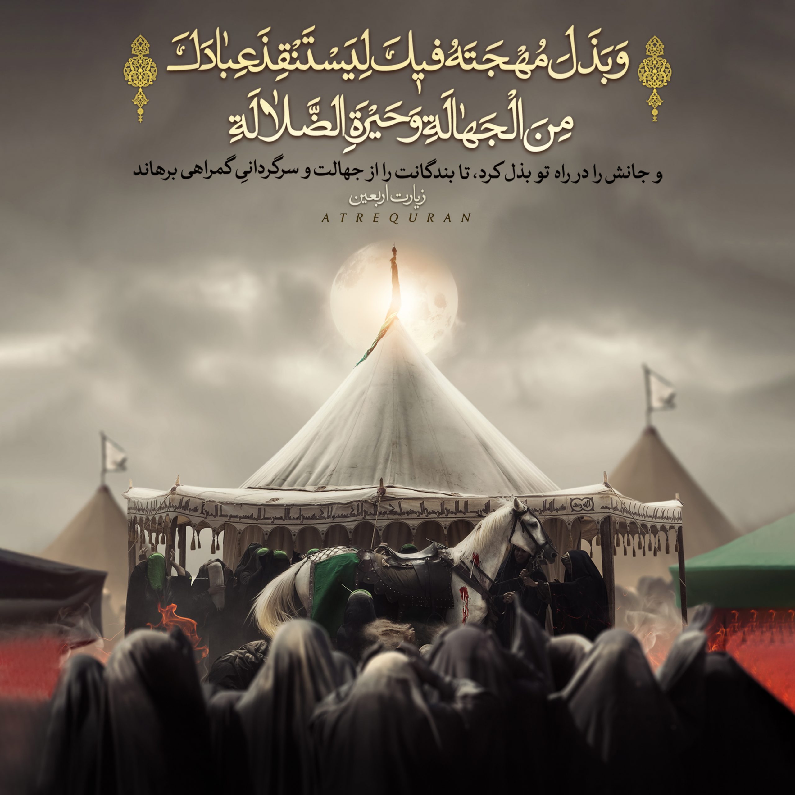 يـا حـسين! بــزرگي تـــو فــــراتر از آن بـــود کــه در هــــزار و چــند صــد سـال قـــبل بــماند. يــا حســين! بــزرگي تـو گـــل زيـبايي شـــد که در کـــربلا رويــيد و عــــطر خـــوش آن هـــمه قـــرنها را فـــرا گـــرفت و مـا عــاشـقـان تـو، حــالا بـعد از قــرنها بـــزرگي ات را پـاس مـي داريم کــوچک و بـــزرگ…