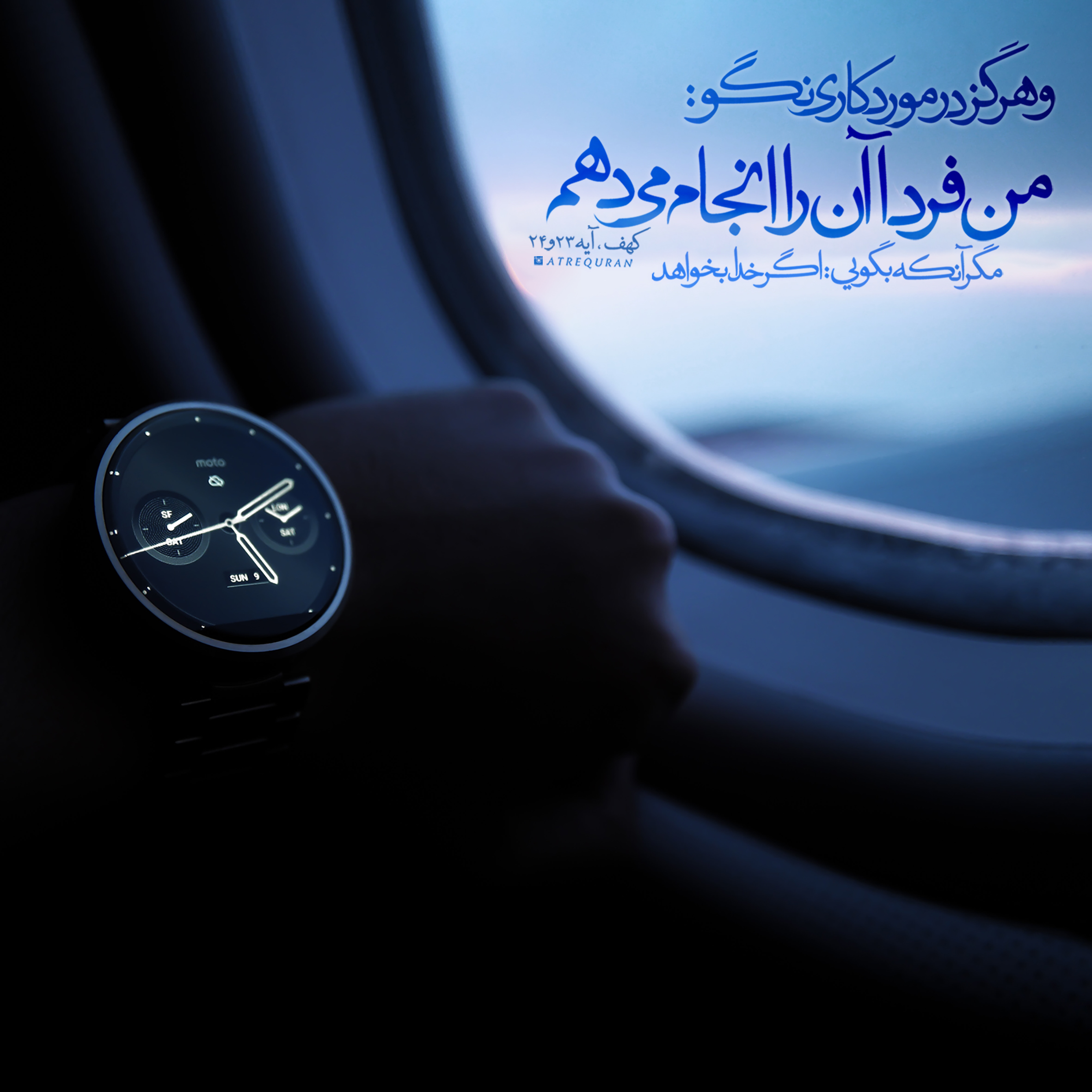 ??وَ لا تَقُولَنَّ لِشَيْءٍ إِنِّي فاعِلٌ ذلِكَ غَداً ،آیه ۲۳ سوره کهف