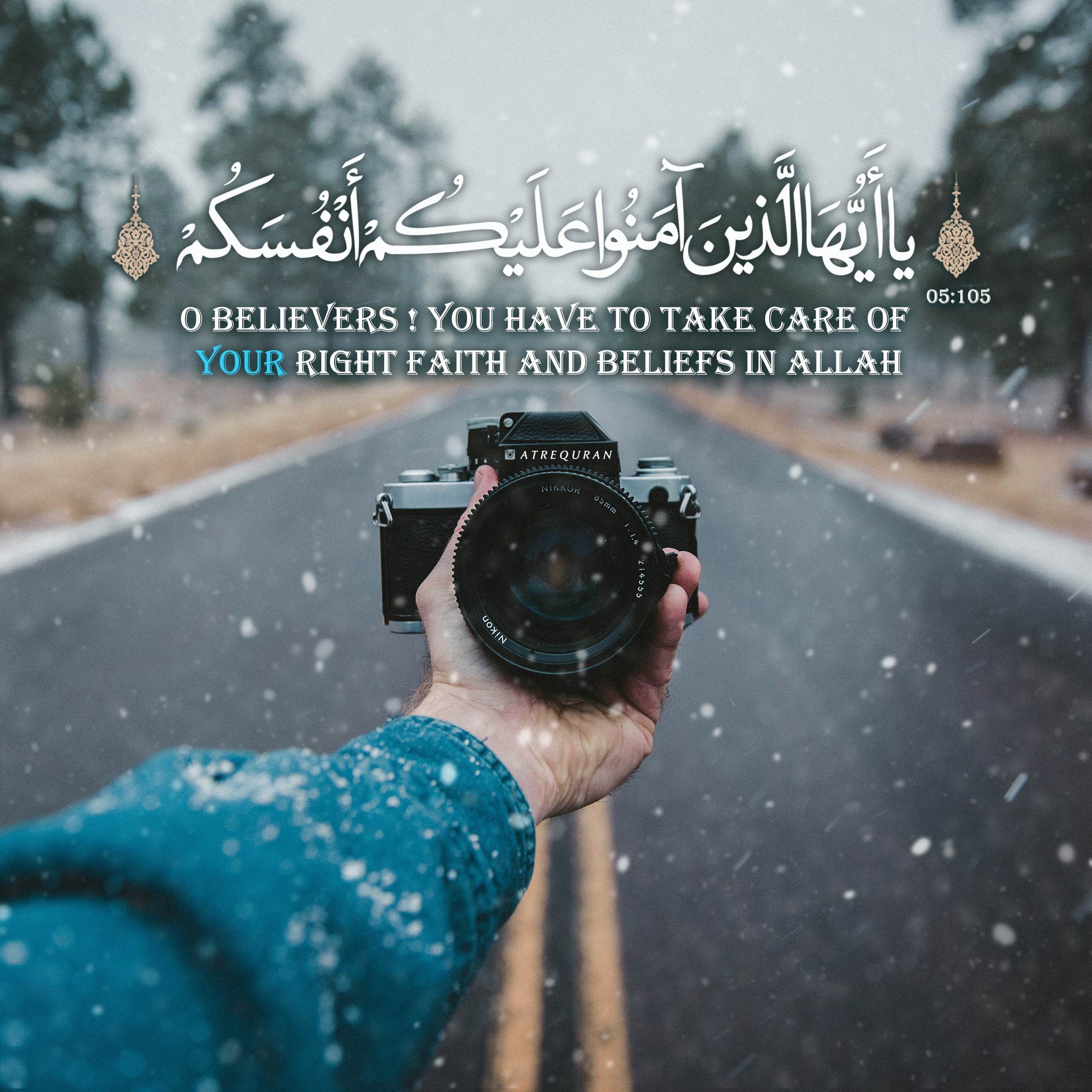 يا أَيُّهَا الَّذِينَ آمَنُوا عَلَيْكُمْ أَنْفُسَكُمْ لا يَضُرُّكُمْ مَنْ ضَلَّ إِذَا اهْتَدَيْتُمْ إِلَى اللَّهِ مَرْجِعُكُمْ جَمِيعاً فَيُنَبِّئُكُمْ بِما كُنْتُمْ تَعْمَلُونَ «آیه ۱۰۵ سوره مبارکه مائده»