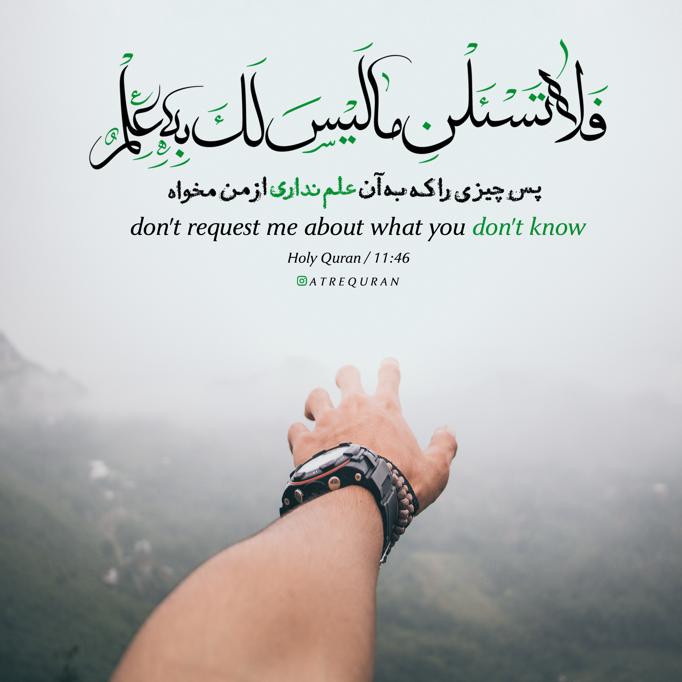 آیه: فلا تسئلن ما لیس لک به علم +عکس